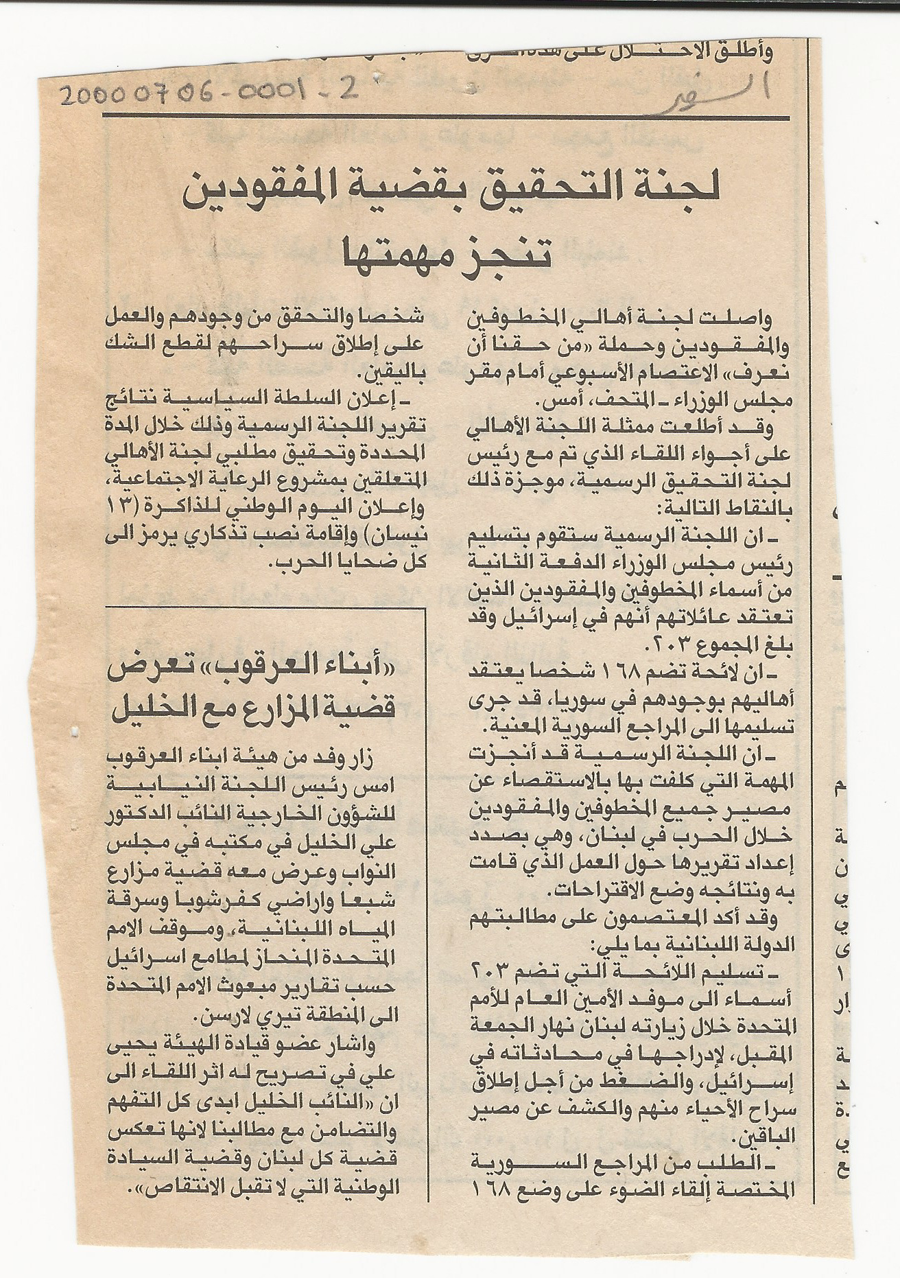 - ar لجنة التحقيق بقضية المفقودين تنجز مهمتها