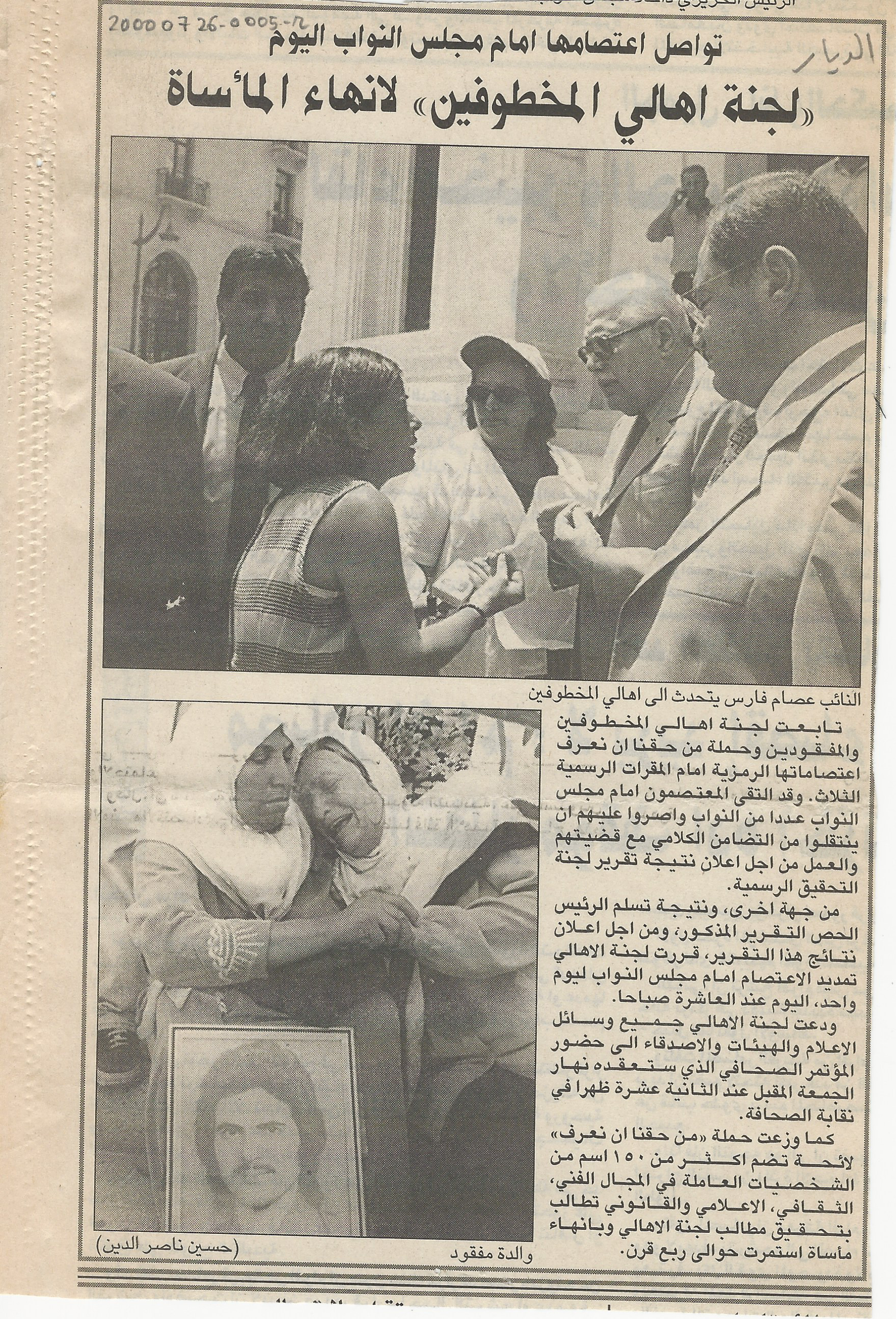لجنة اهالي المخطوفين لانهاء الماساة، تواصل اعتصامها امام مجلس النواب اليوم