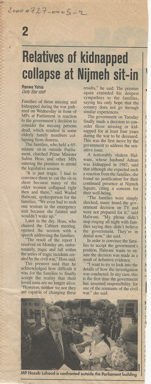 - en Relatives of kidnapped collapse at Nijmeh sit-in