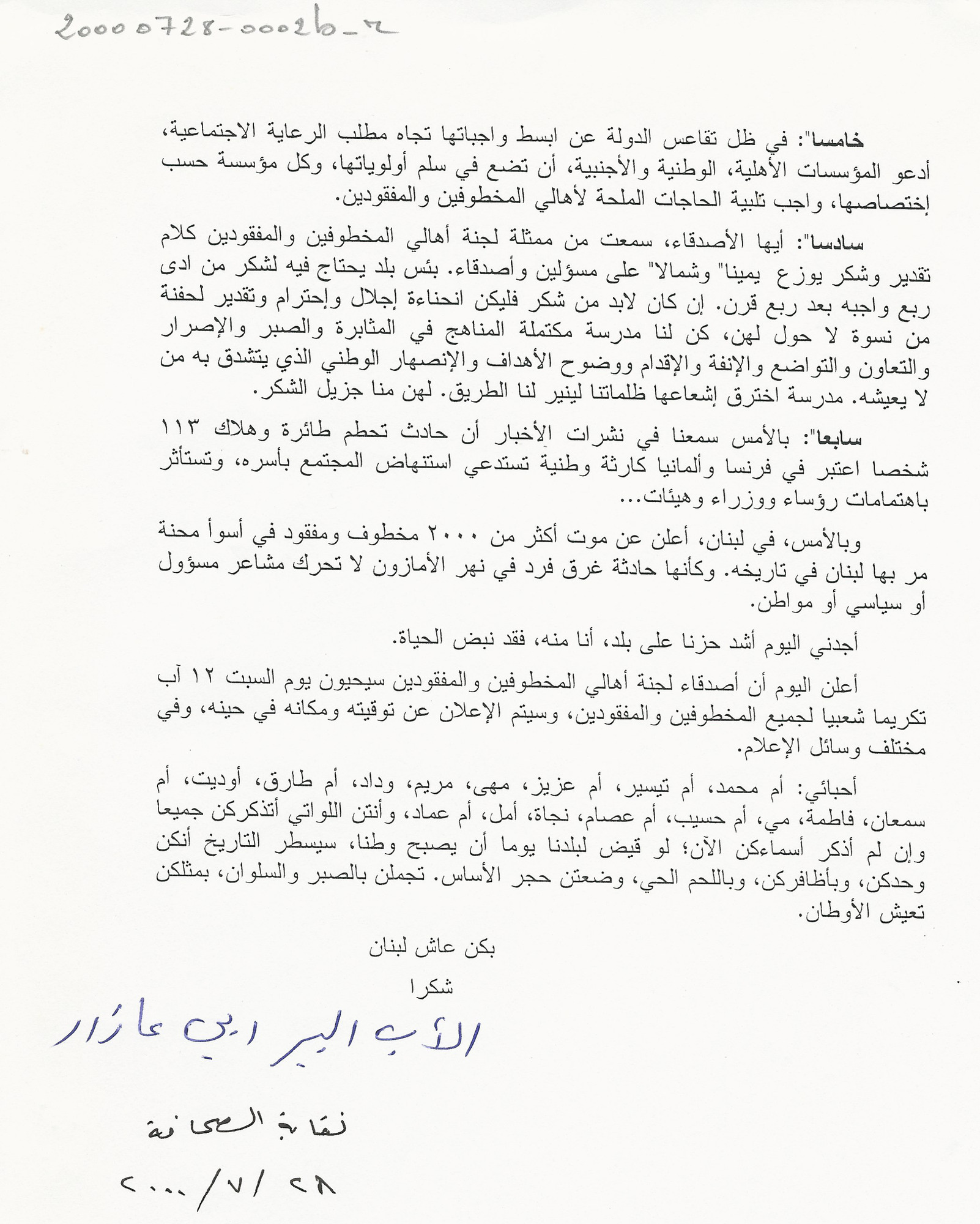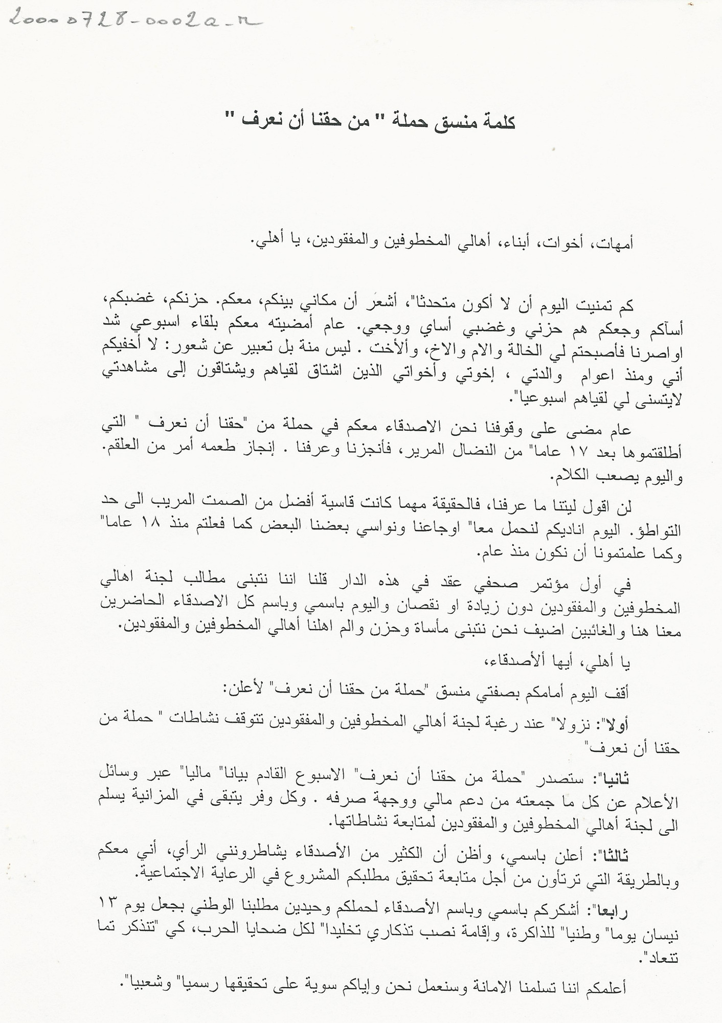 - ar كلمة منسق حملة من حقنا ان نعرف بعد اعلان وفاة جميع المفقودين والمخطوفين