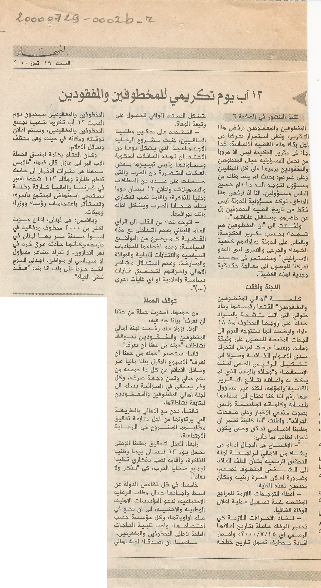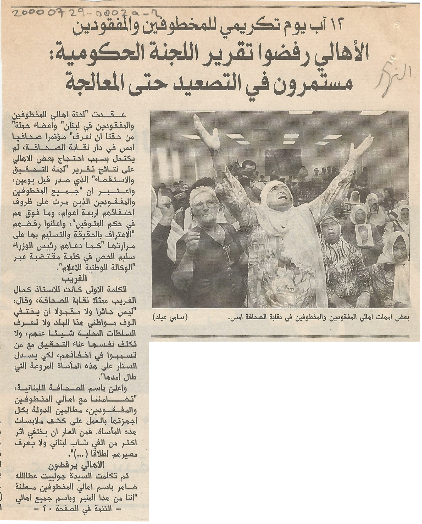 The families refused to endorse the report of the governmental commission: We will continue to escalate actions until the issue is fully addressed. August 12 is the day for honoring the kidnapped and missing.