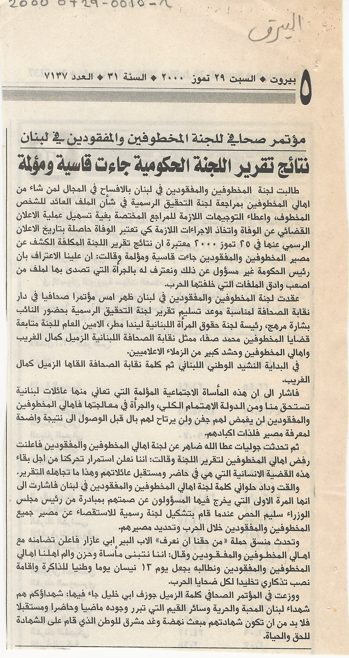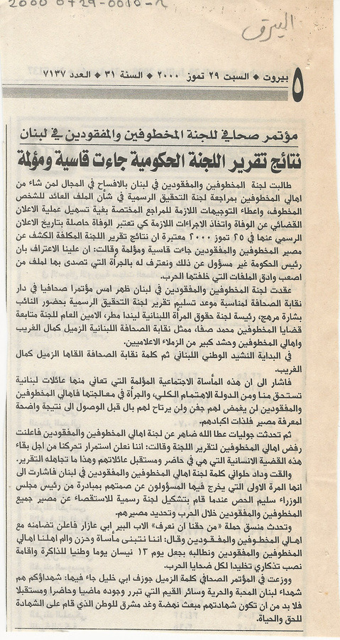 The findings of the report of the governmental commission were tough and painful. The Committee of the Families of the Kidnapped and Missing in Lebanon holds a press conference.