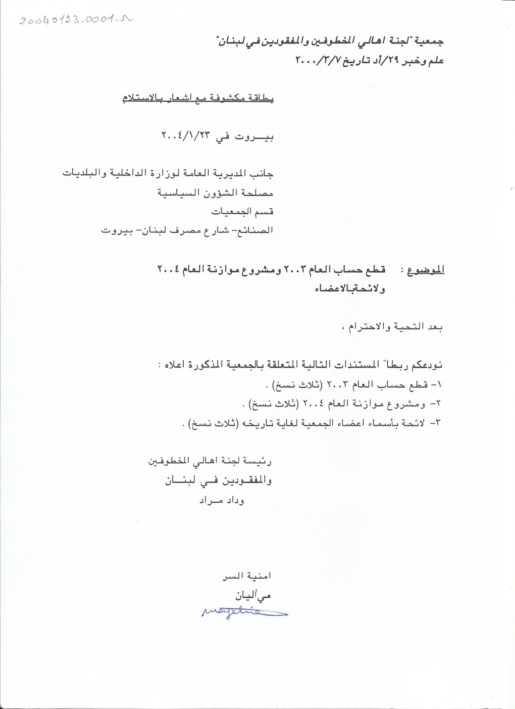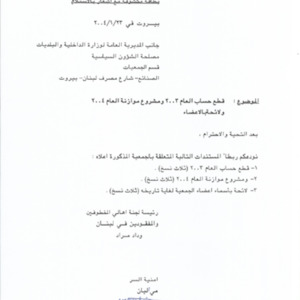 قطع حساب العام، 2003 ومشروع موازنة العام، 2004