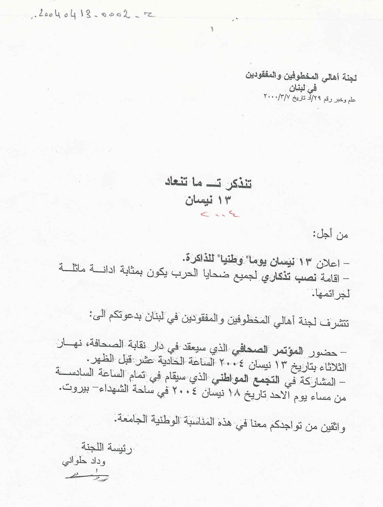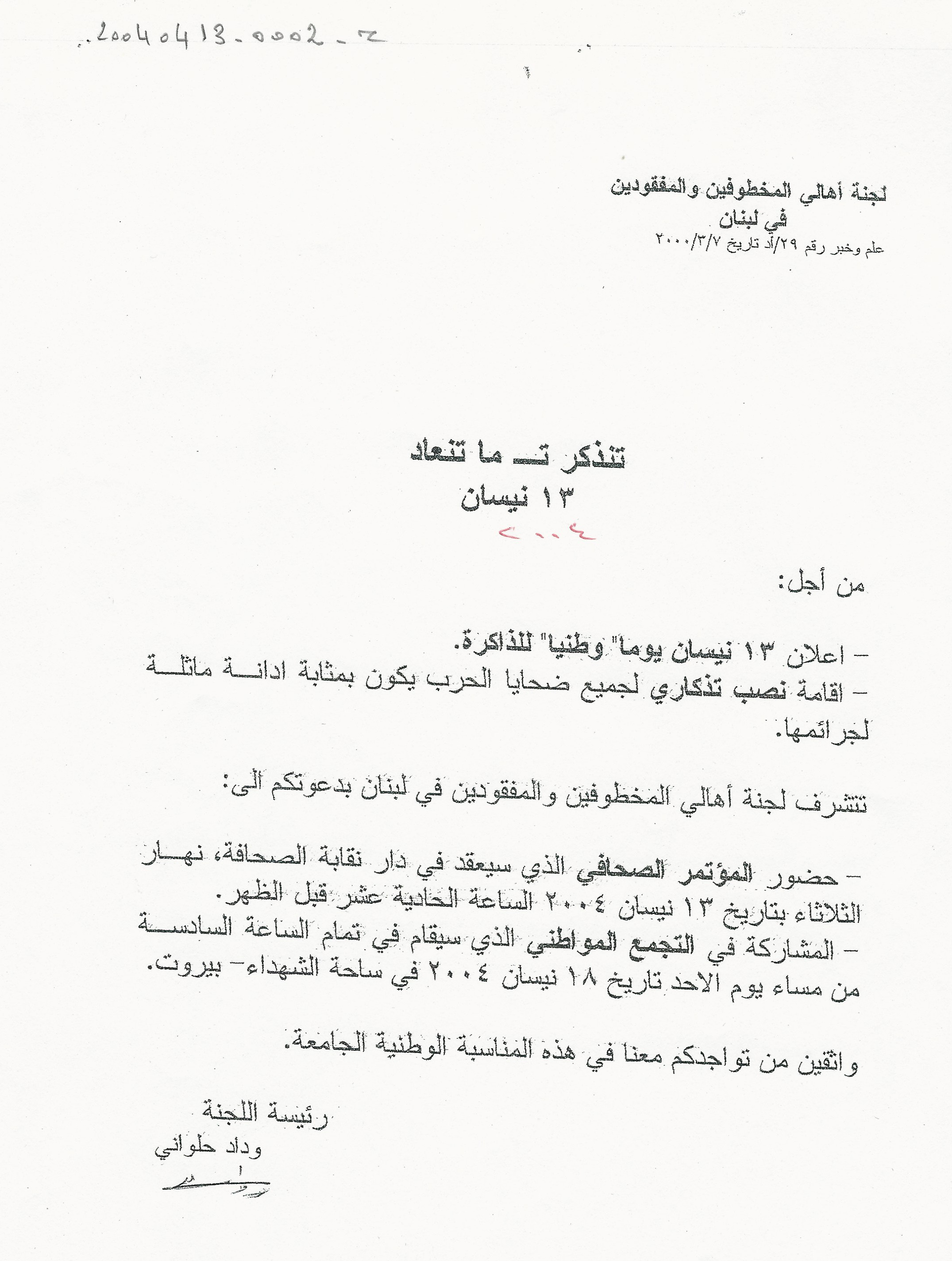 - ar تنذكر ت ما تنعاد، 13 نيسان