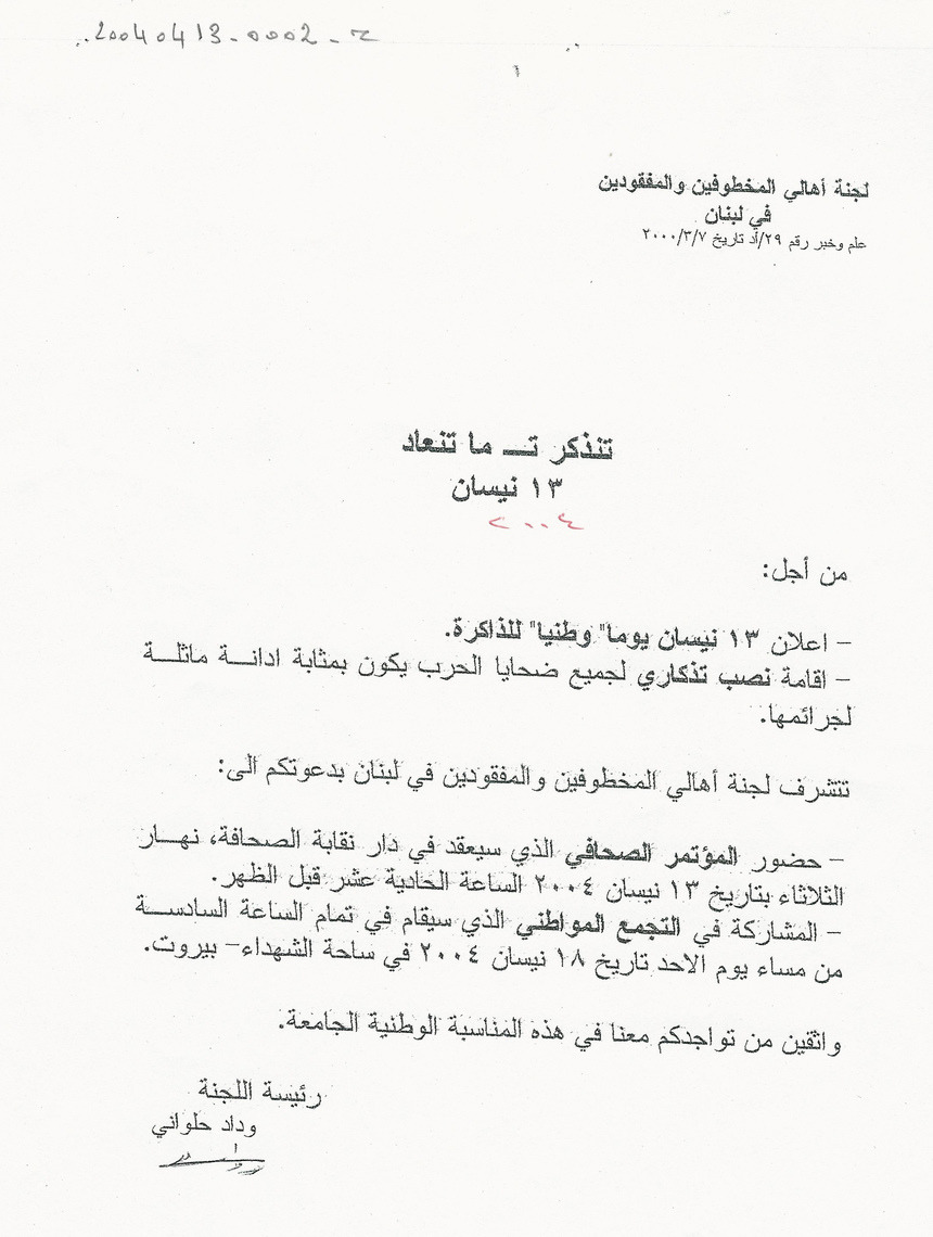 - لجنة اهالي المخطوفين والمفقودين في لبنان