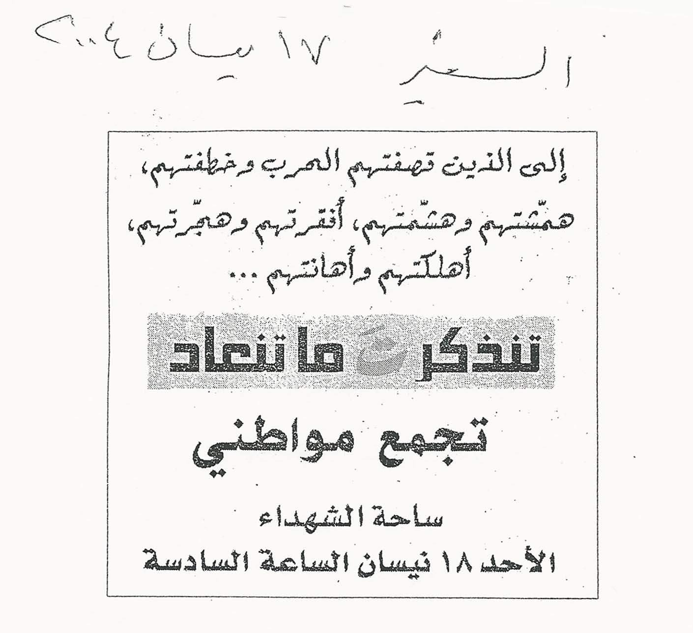 - ar تجمع مواطني، ساحة الشهداء، الاحد 18 نيسان الساعة السادسة