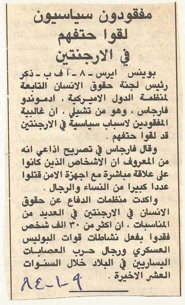 - ar مفقودون سياسيون لقوا حتفهم في الارجنتين