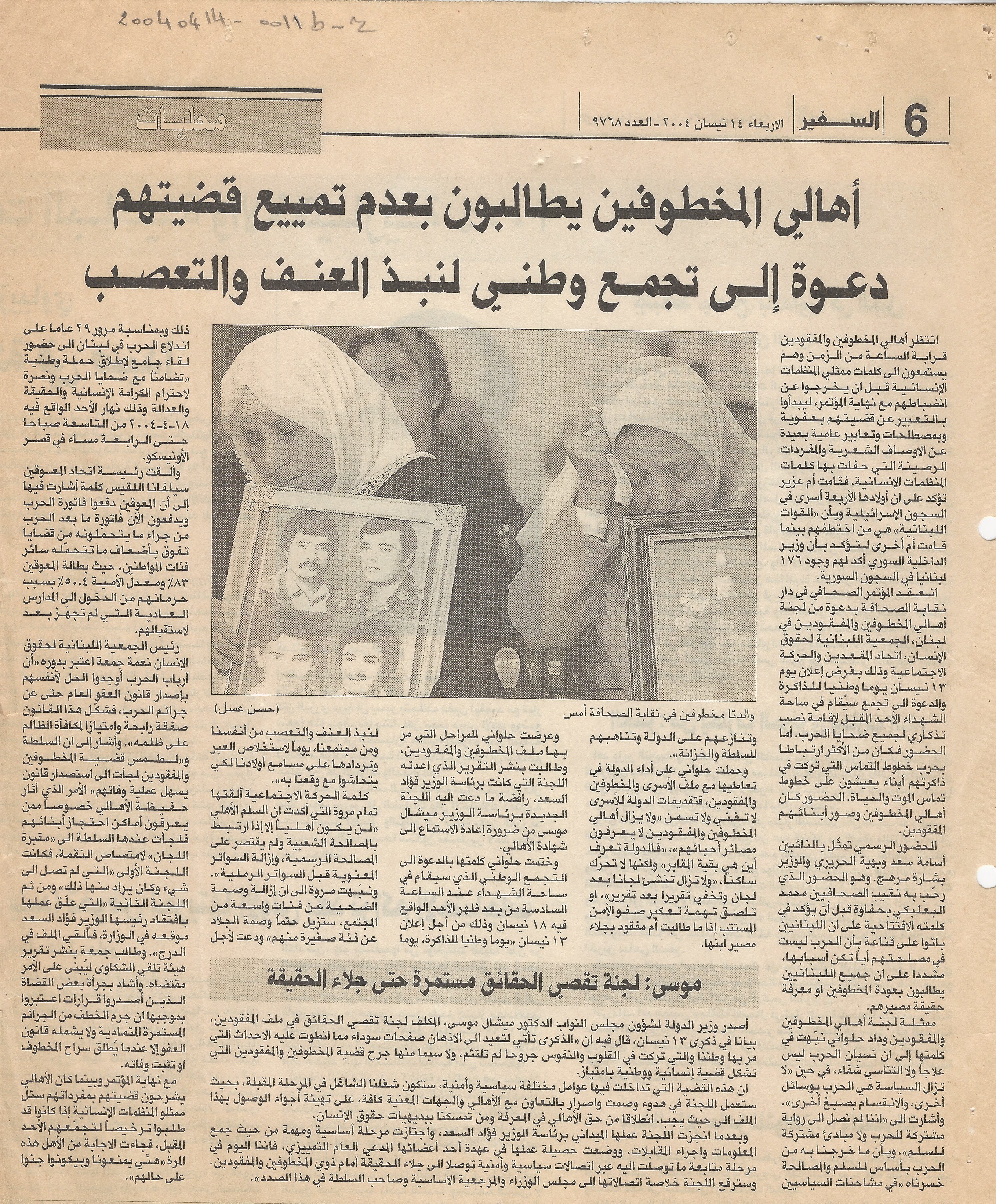 اهالي المخطوفين يطالبون بعدم تمييع قضيتهم: دعوة الى تجمع وطني لنبذ العنف والتعصب
