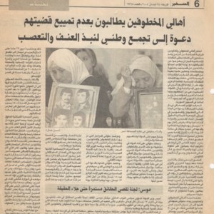 The families of the kidnapped request not to dilute their issue: a call for a national gathering to reject violence and intolerance.
