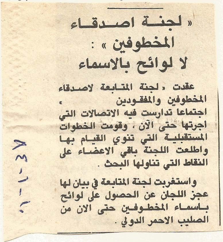 - ar لجنة اصدقاء المخطوفين: لا لوائح بالأسماء
