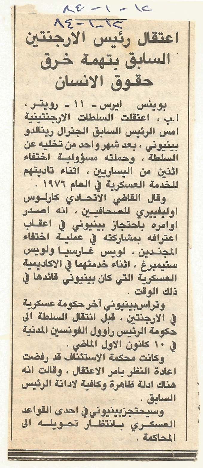 - ar اعتقال رئيس الأرجنتين السابق بتهمة خرق حقوق الانسان
