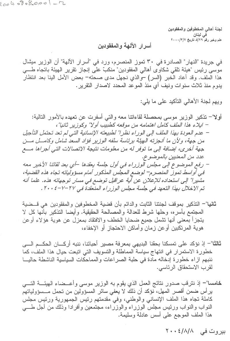 - لجنة اهالي المخطوفين والمفقودين في لبنان