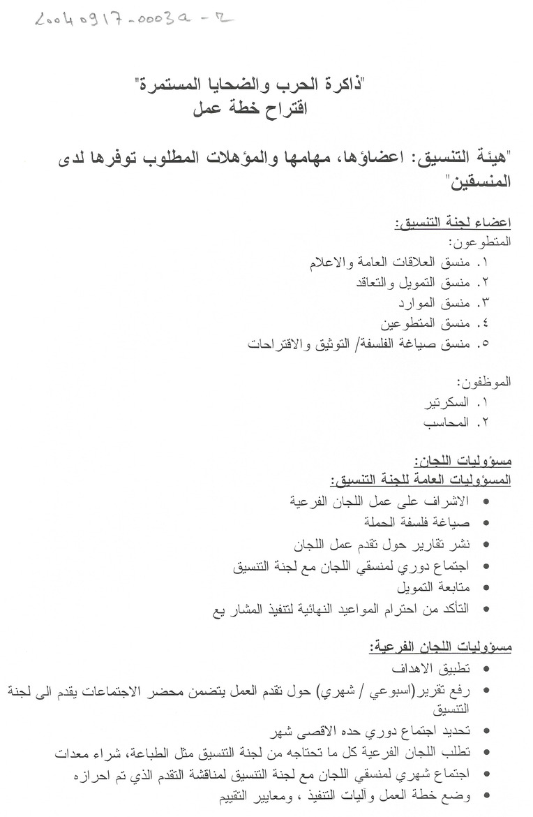 - ar ذاكرة الحرب و الضحايا المستمرة: اقتراح خطة عمل
