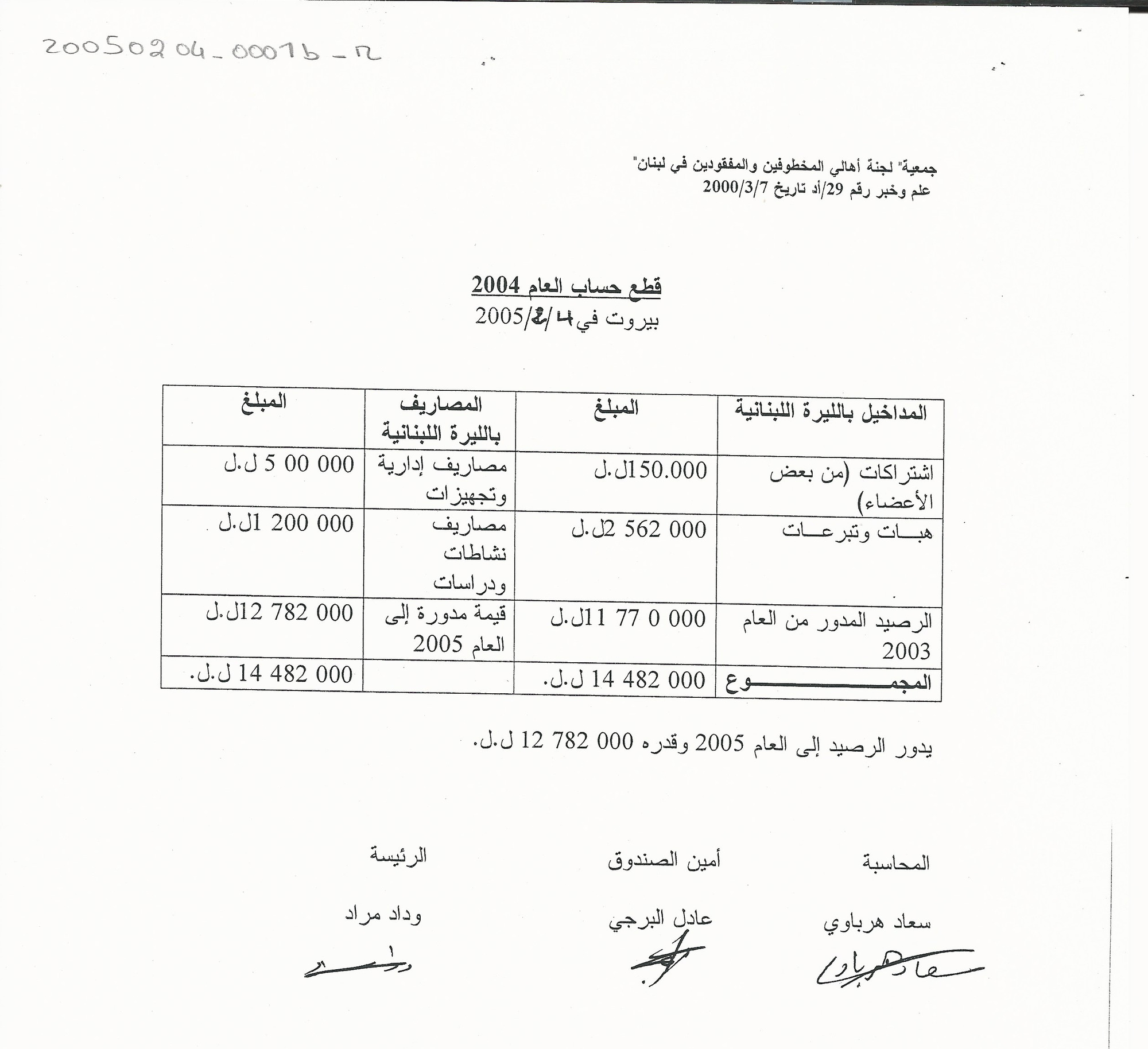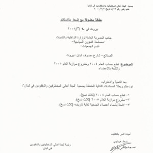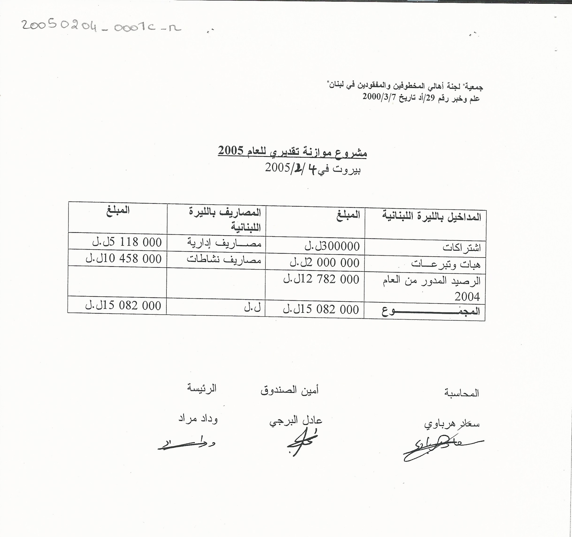 قطع حساب العام، 2004 ومشروع موازنة العام، 2005