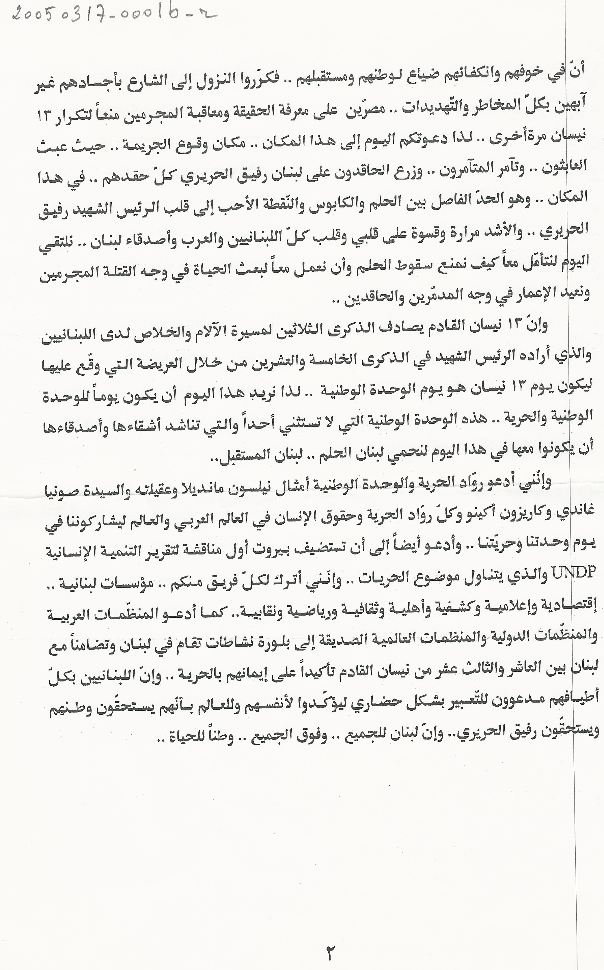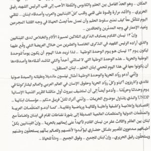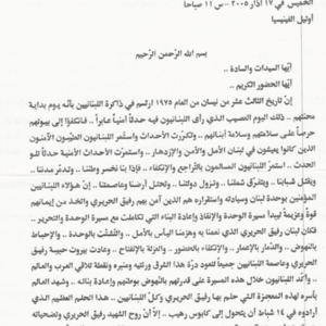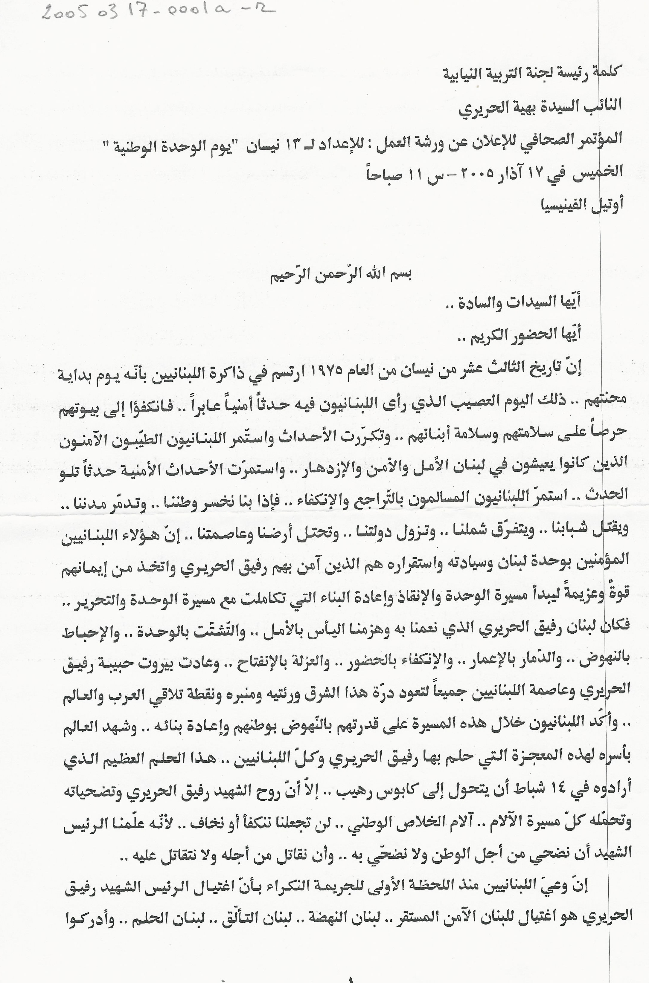 كلمة رئيسة لجنة التربية النيابية ،النائب السيدة بهية الحريري: المؤتمر الصحافي للاعلان عن ورشة العمل للاعداد لـ 13 نيسان يوم الوحدة الوطنية