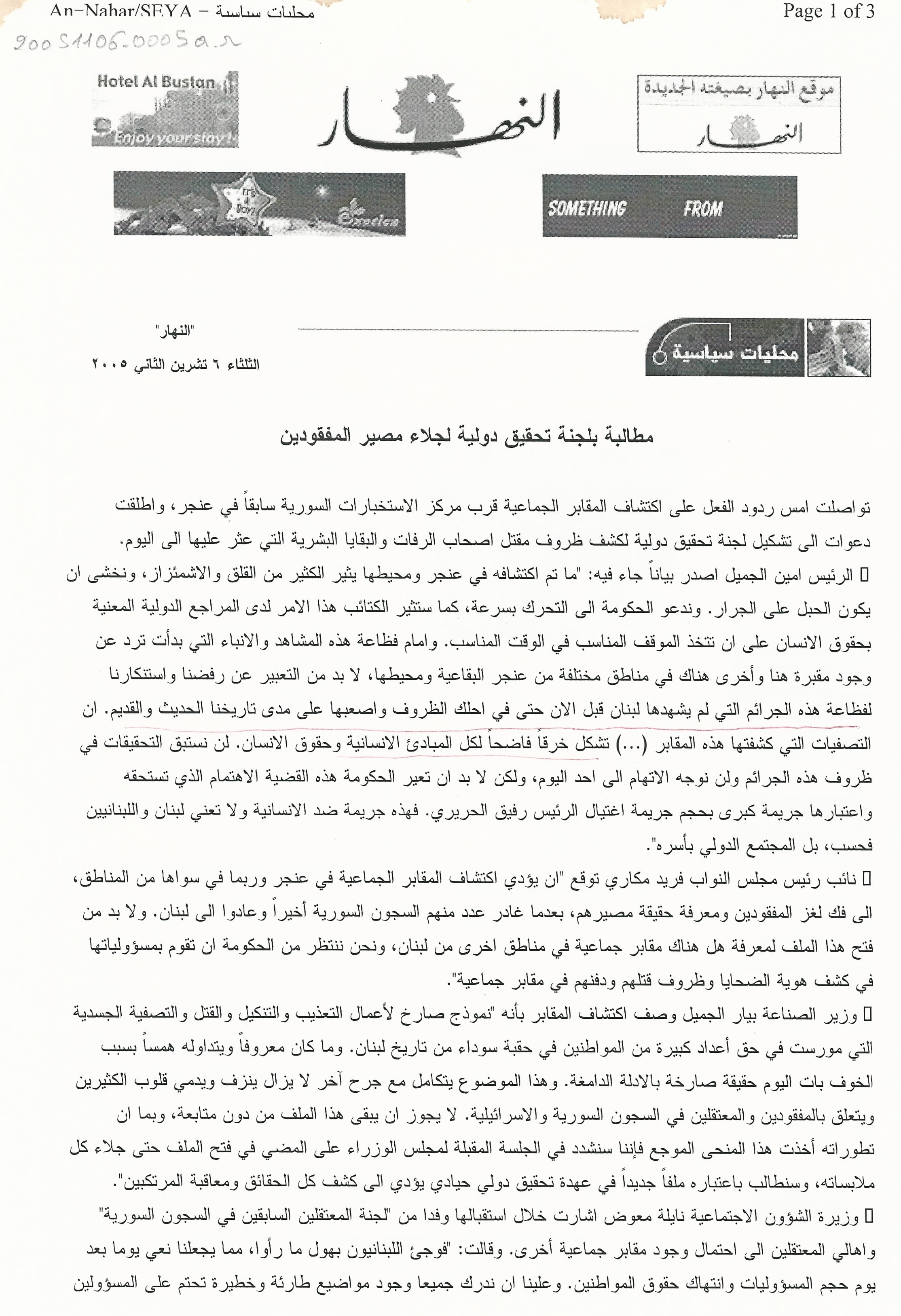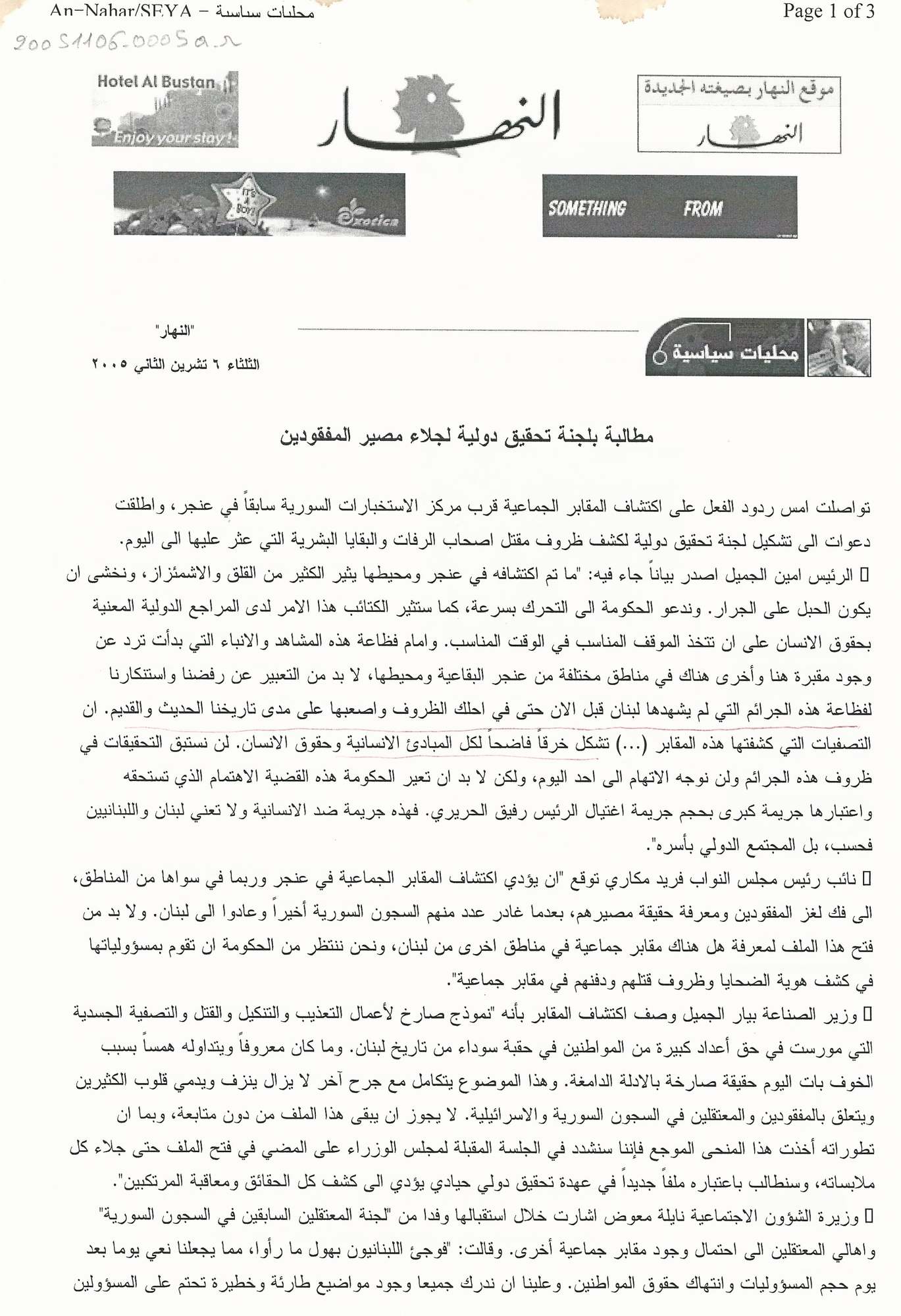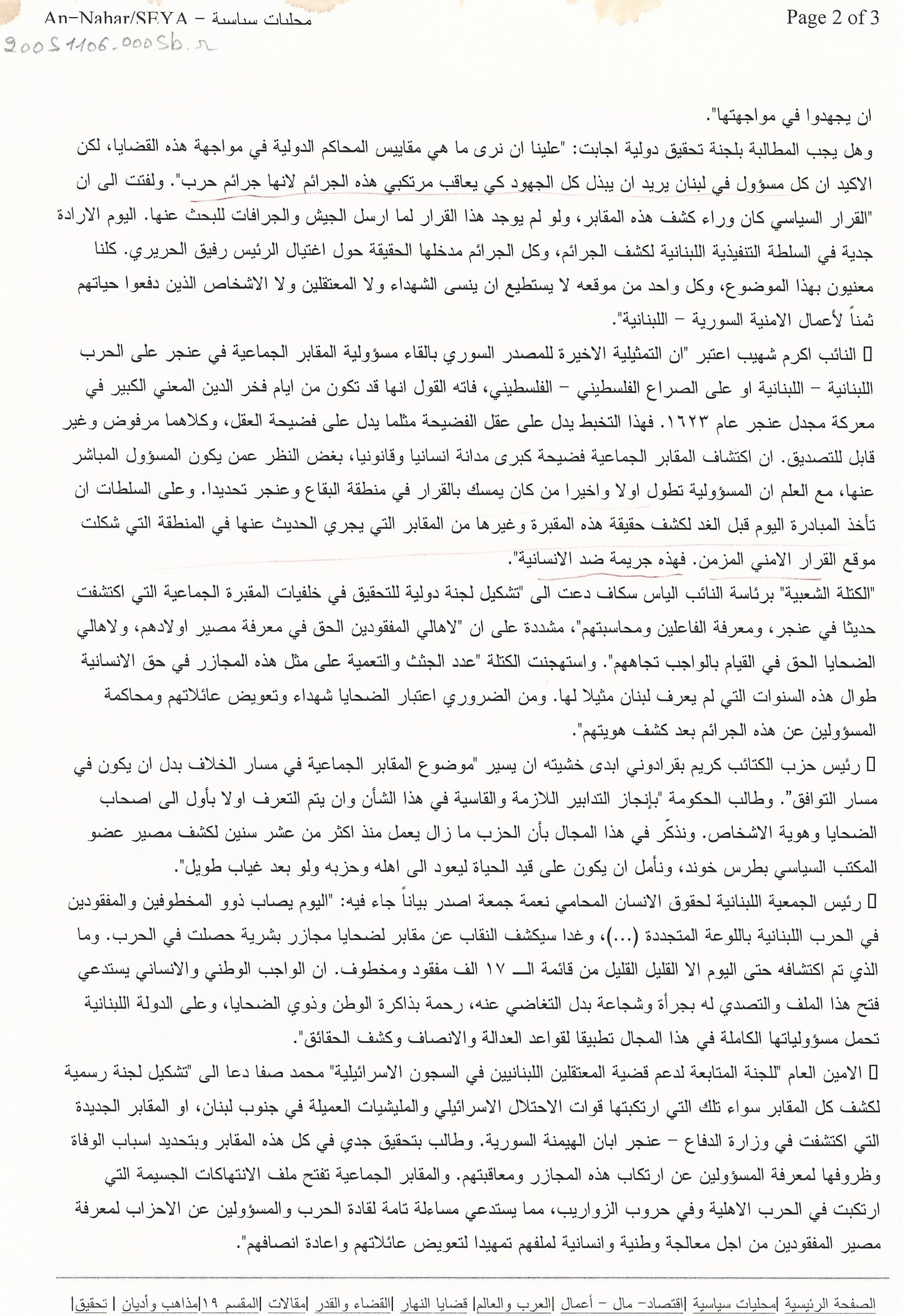 - ar مطالبة بلجنة تحقيق دولية لجلاء مصير المفقودين