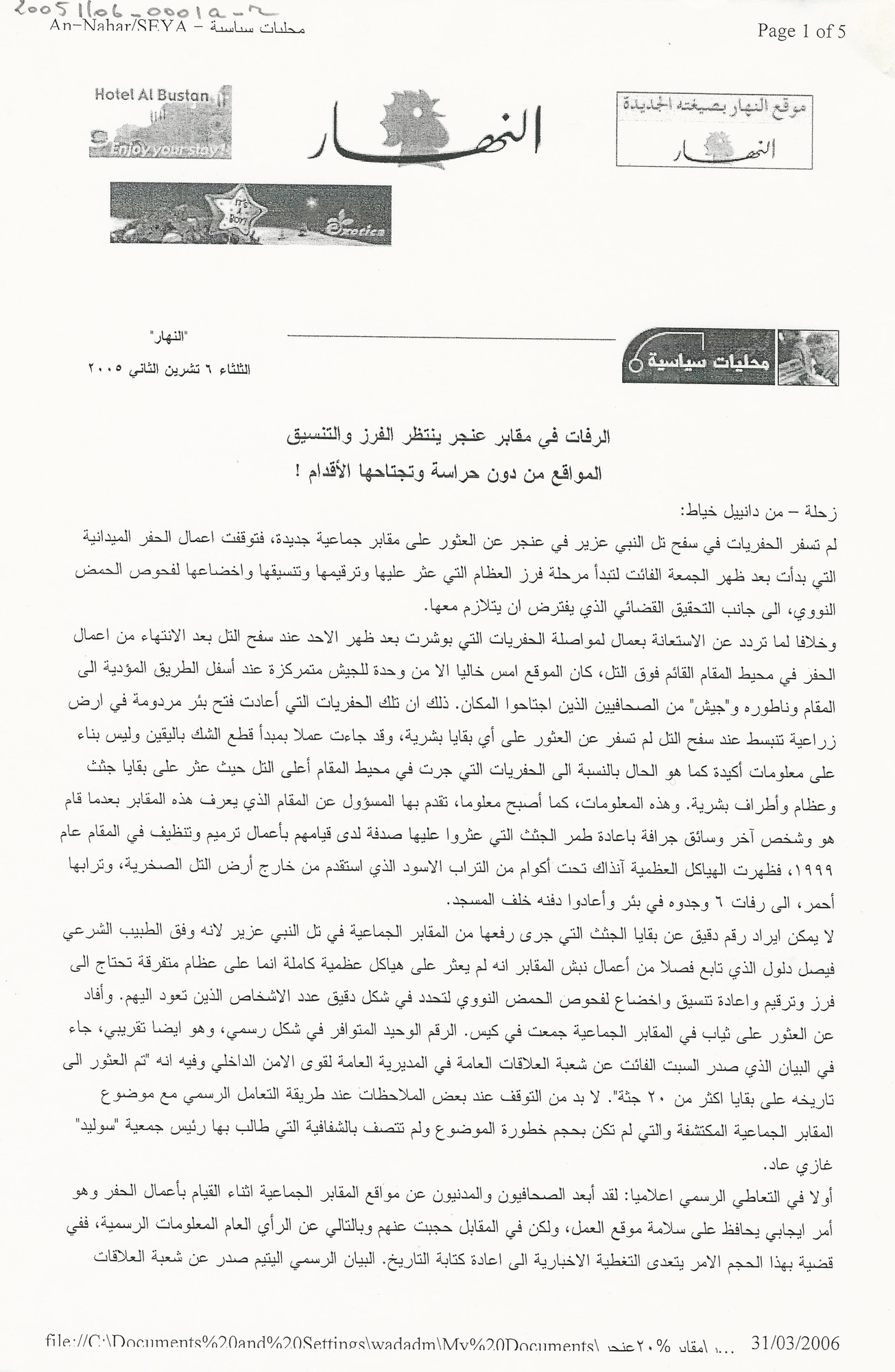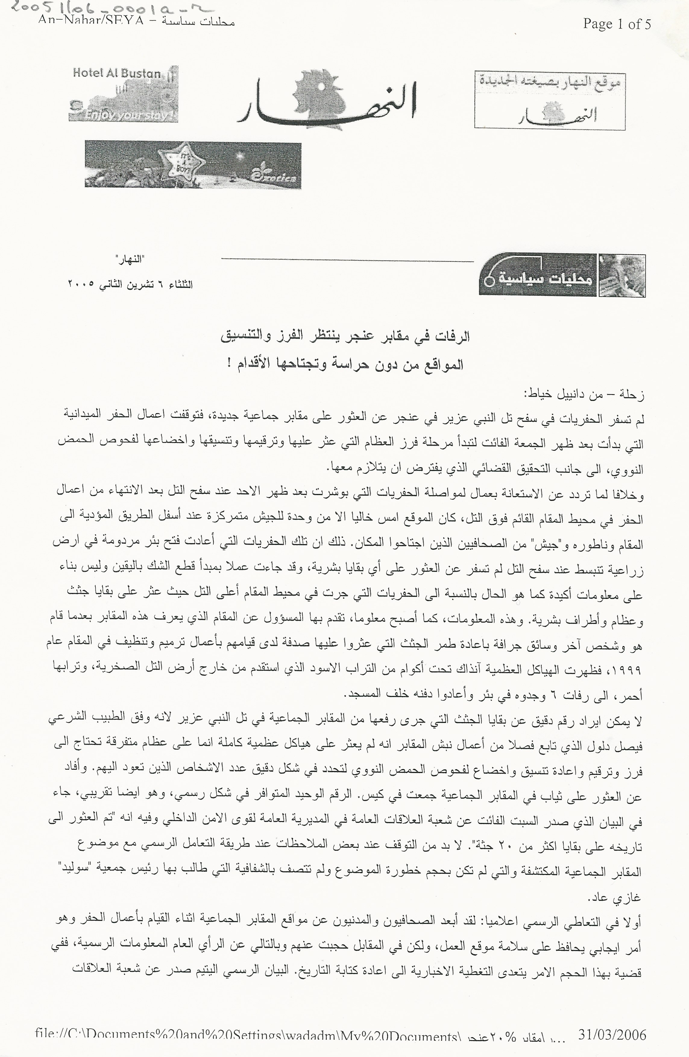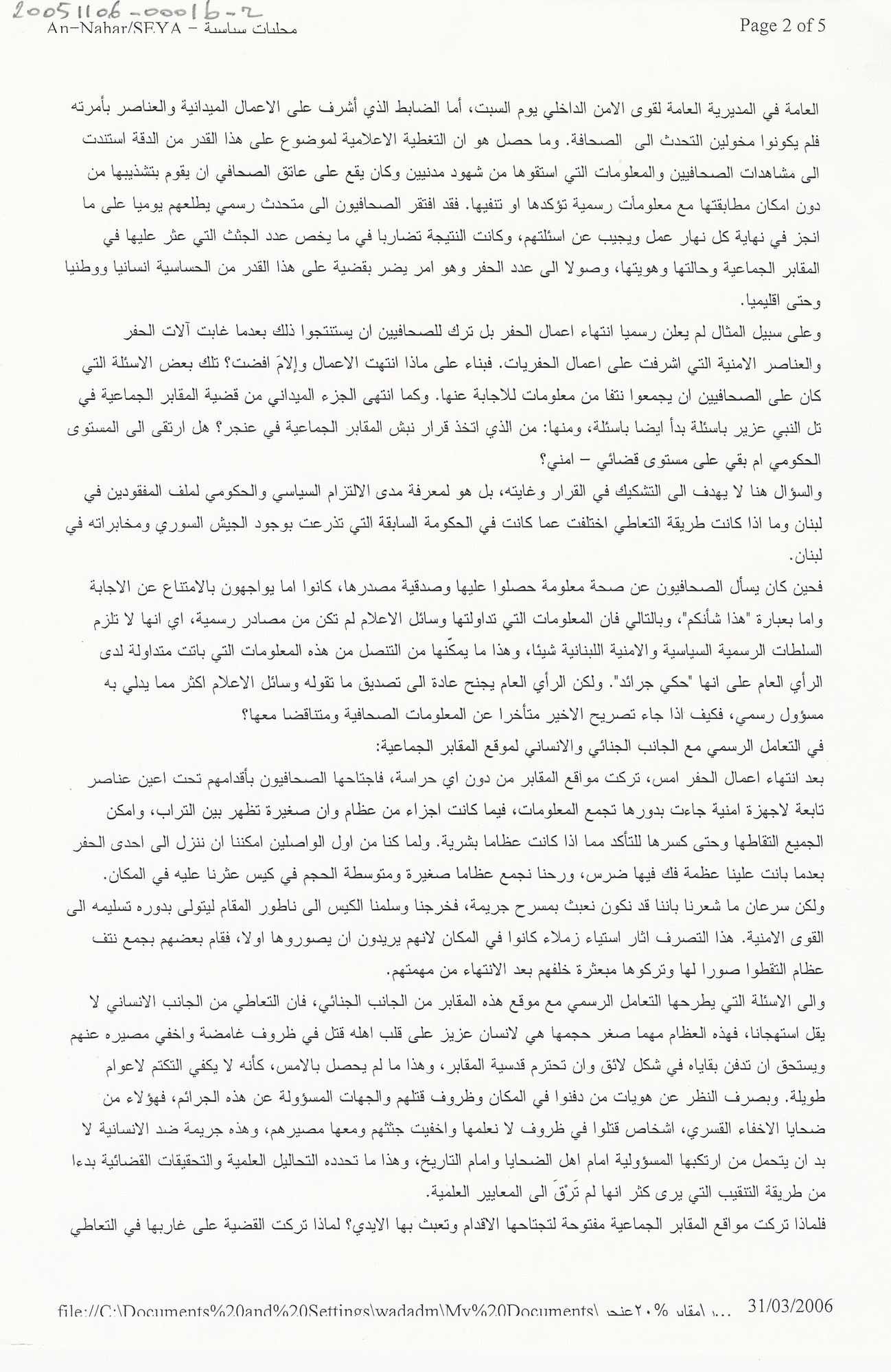 The remains found in Anjar’s mass graves are yet to be sorted out and recovered: The locations are not protected and are trampled underfoot.