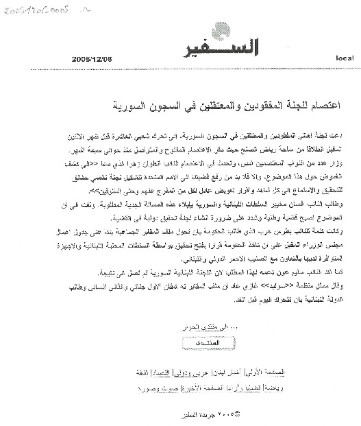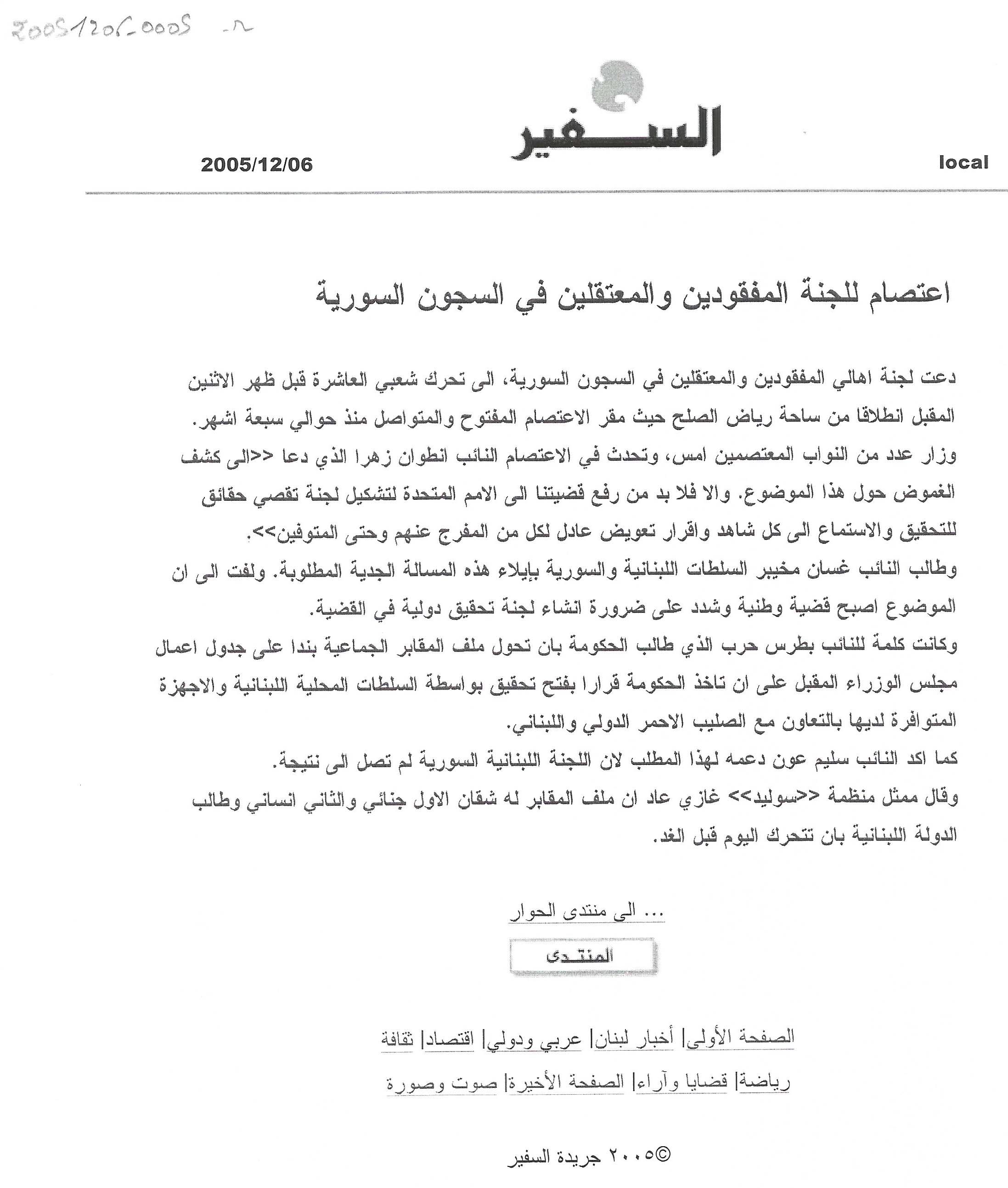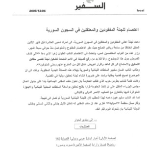 - en The Committee of the Families of the Missing and Detained in Syrian Prisons holds a sit-in.