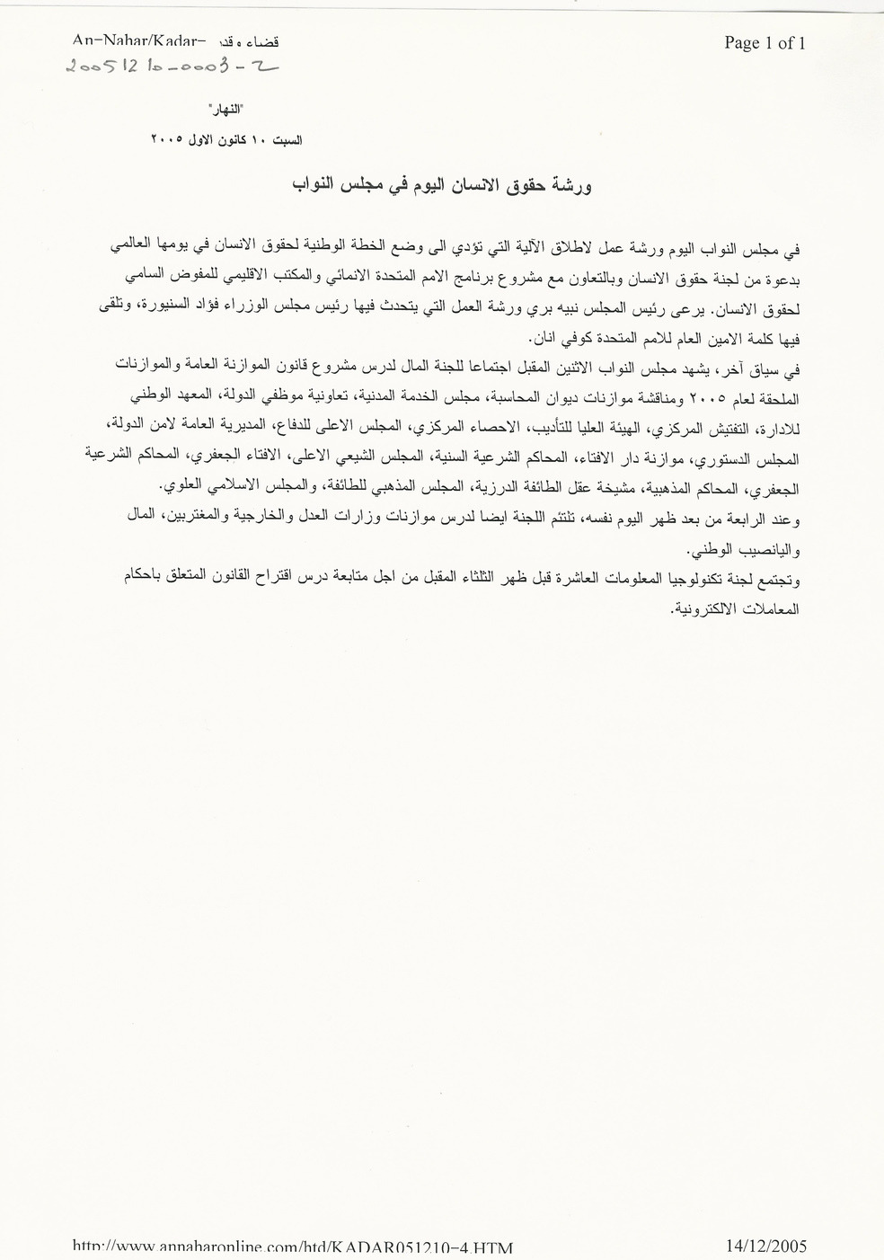 - ar ورشة حقوق الانسان اليوم في مجلس النواب