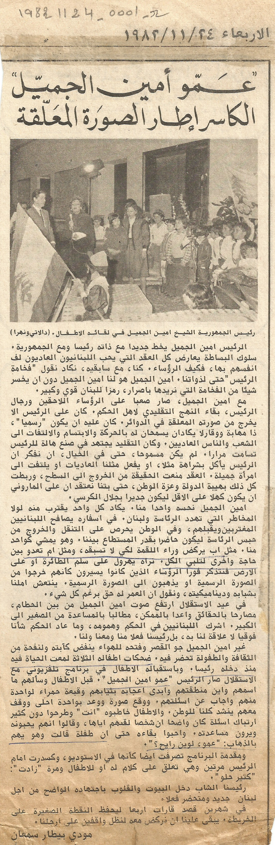 - en “Uncle Ameen Gemayel”, the breaker of the hanging photo frame.