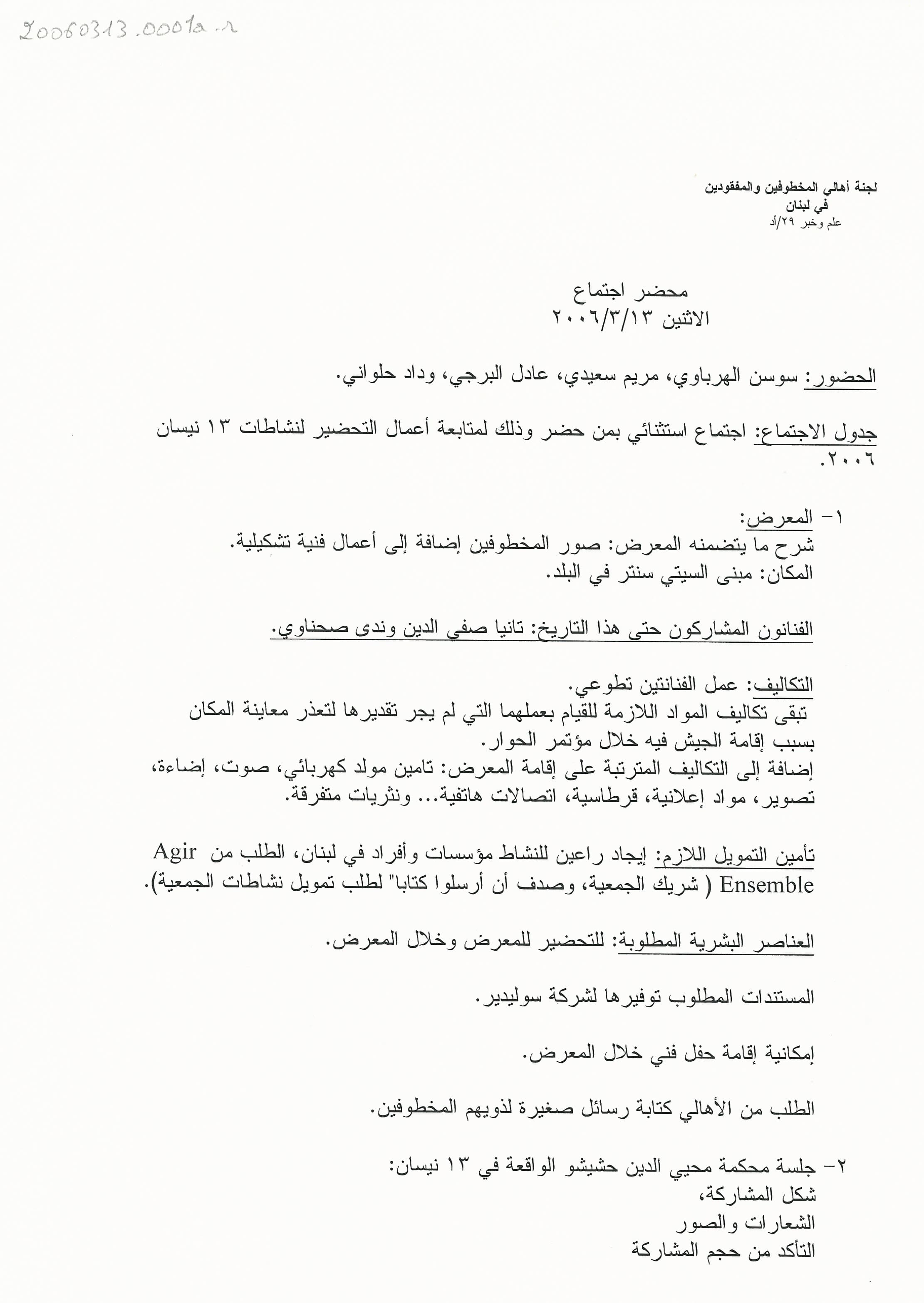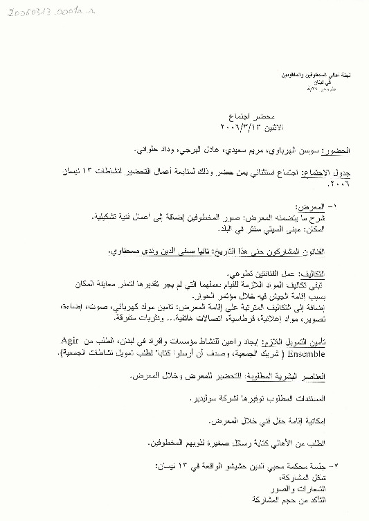 - ar محضر اجتماع الهيئة الادارية للجنة الاهالي، الاثنين، 13، 3، 2006