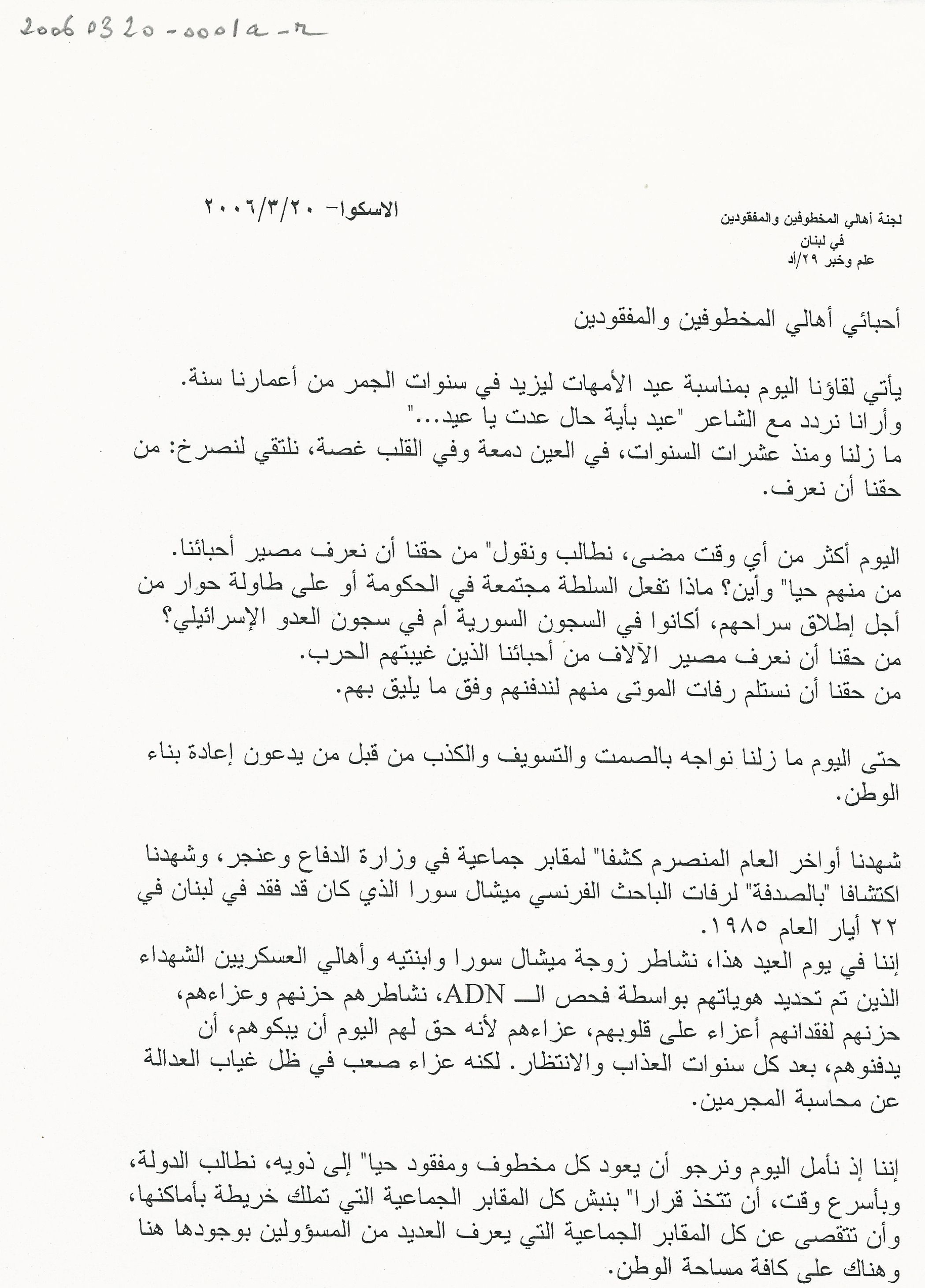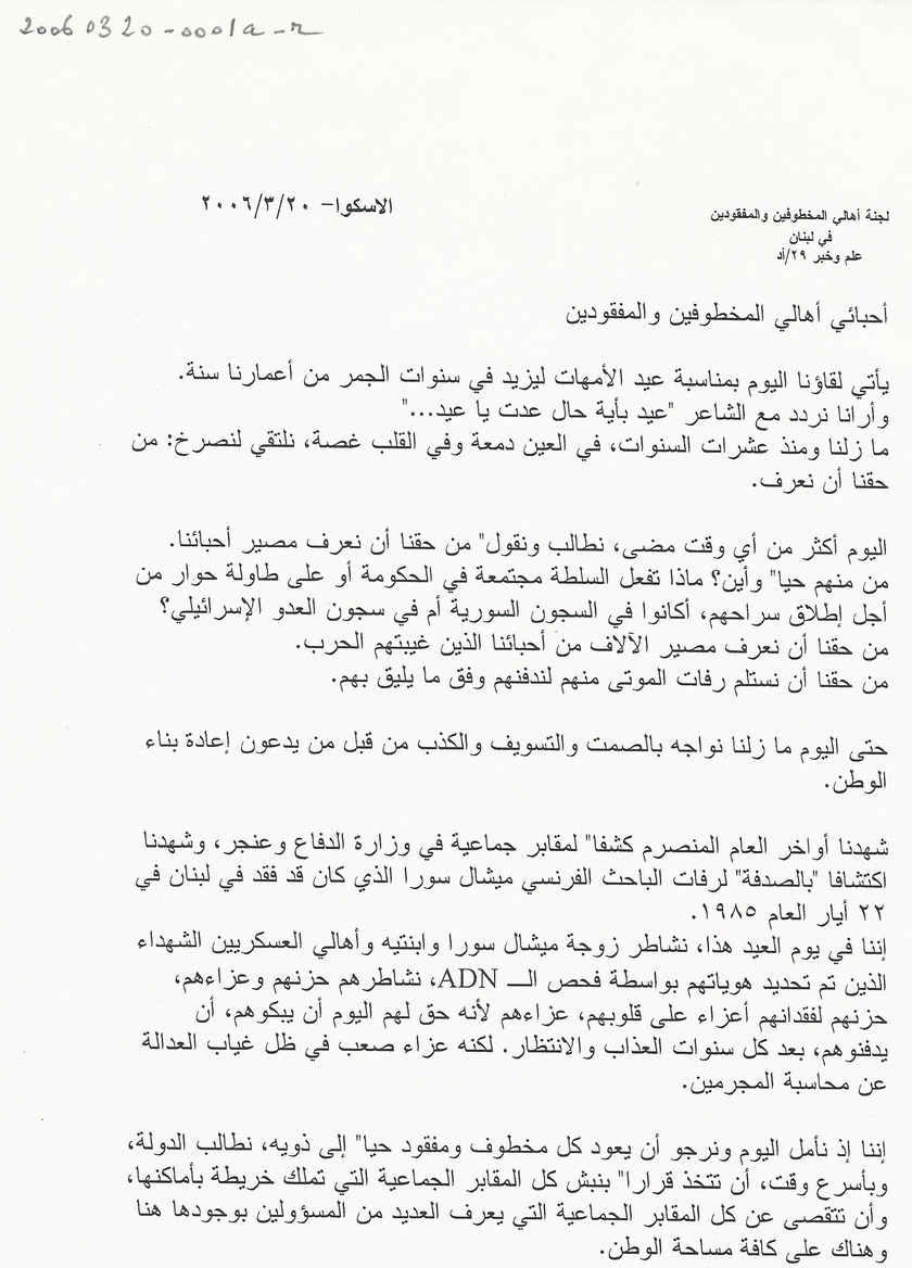 - لجنة اهالي المخطوفين والمفقودين في لبنان