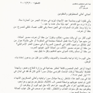 - ar كلمة لجنة الاهالي بمناسبة عيد الام