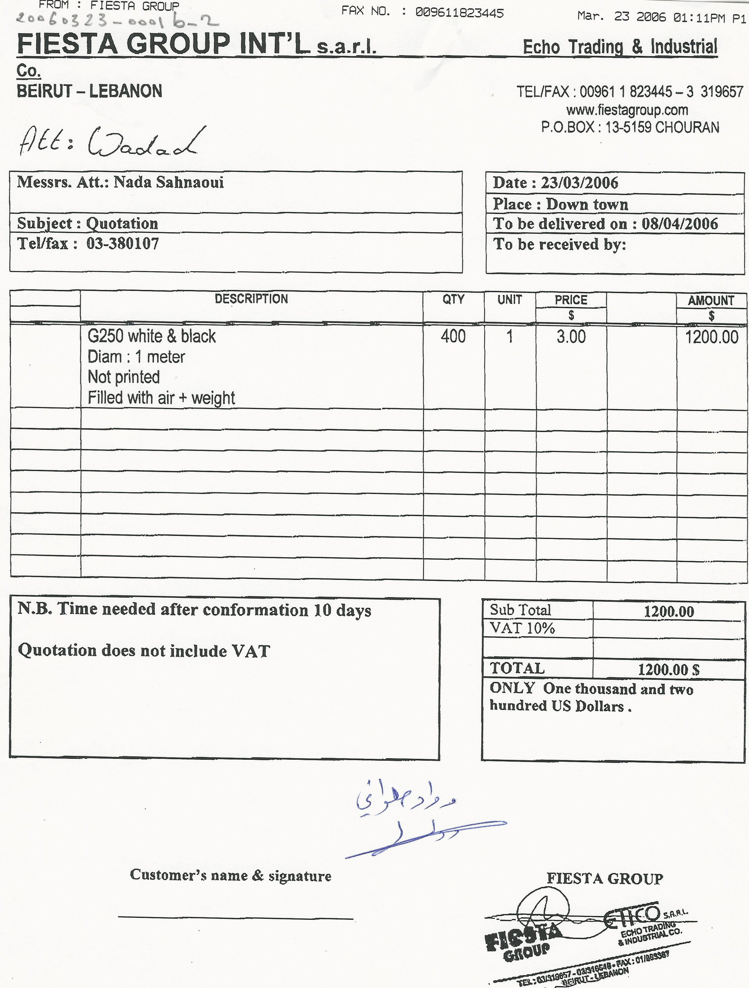 - en Dear Director-General of Vista Group, Mr. Wissam Akawi