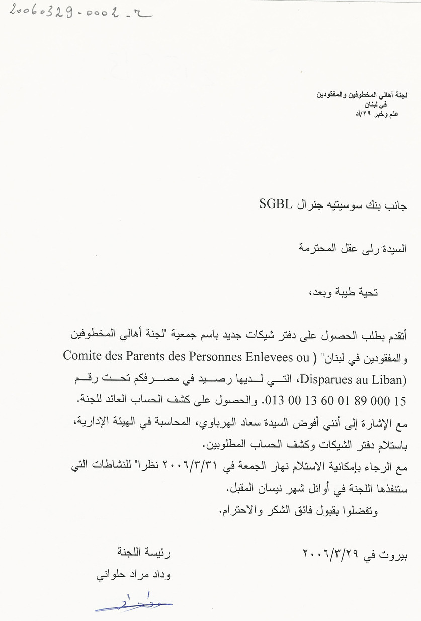 - ar SGBL رسالة الى بنك سوسيتيه جنرال