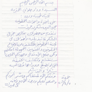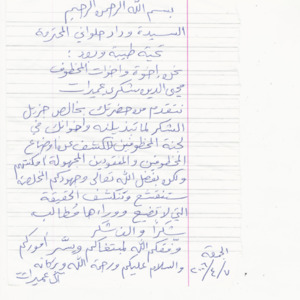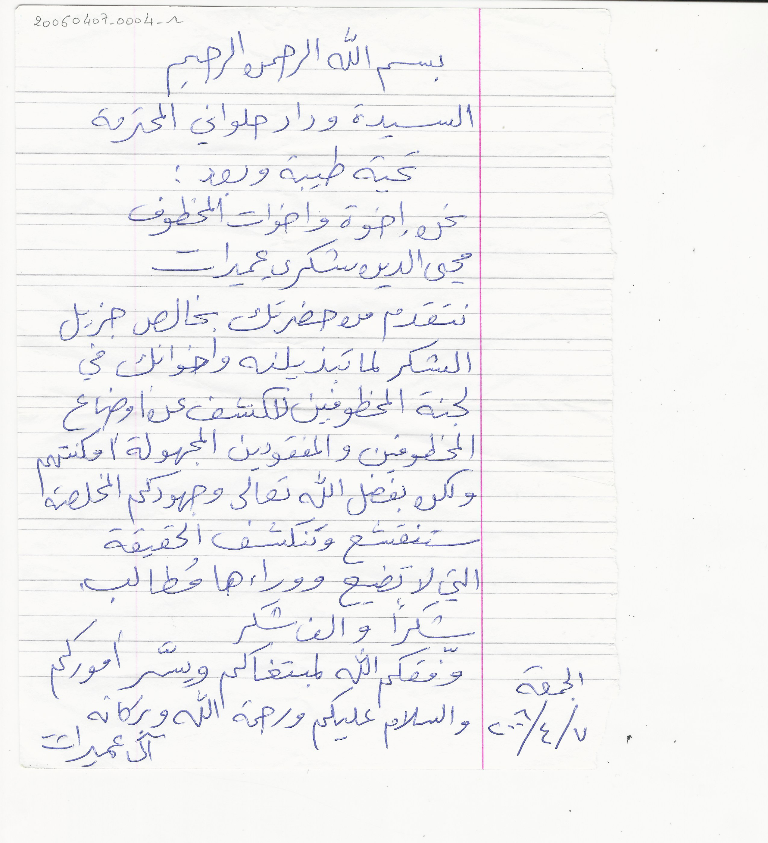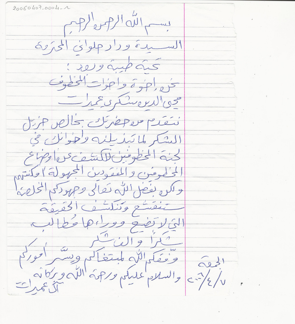 - ar رسالة شكر من آل عميرات الى وداد حلواني