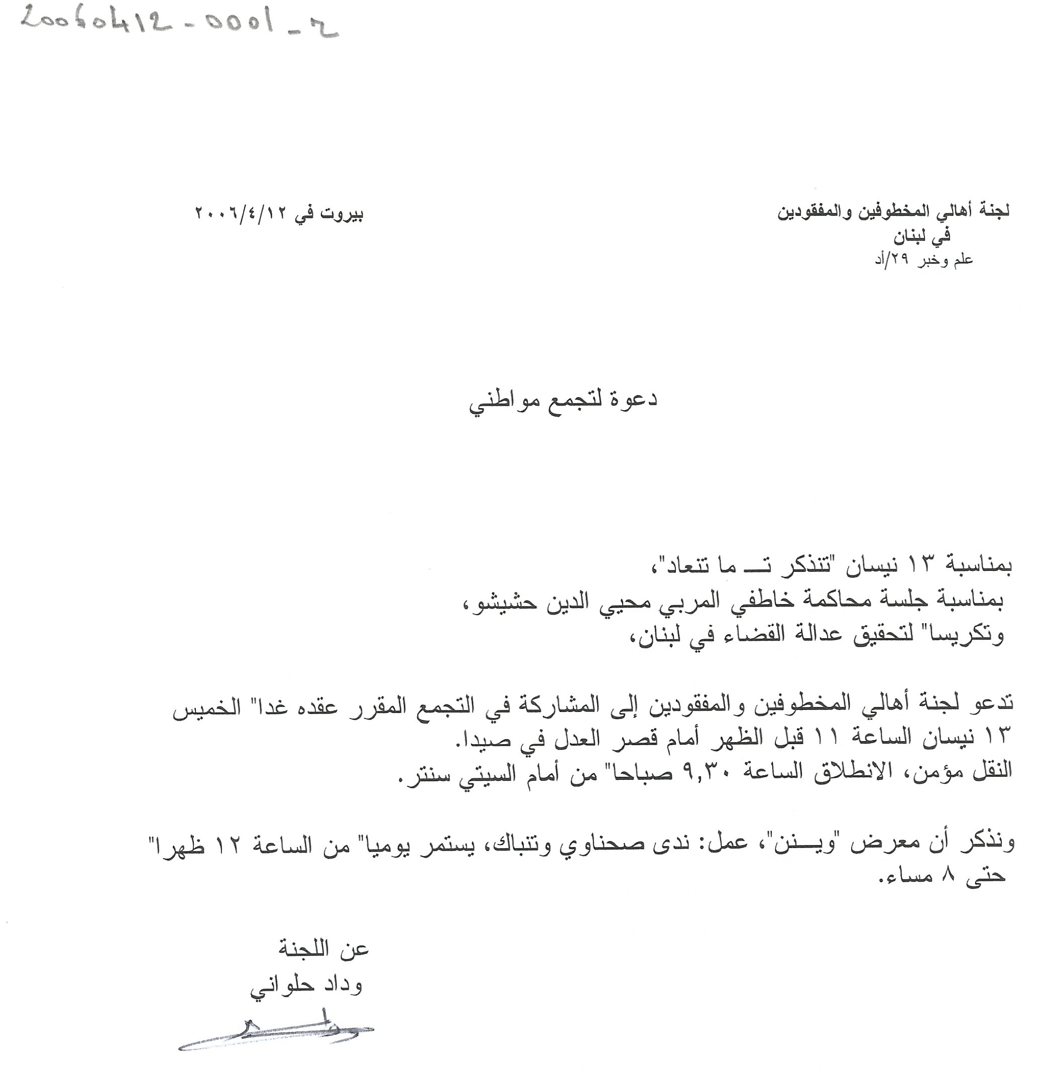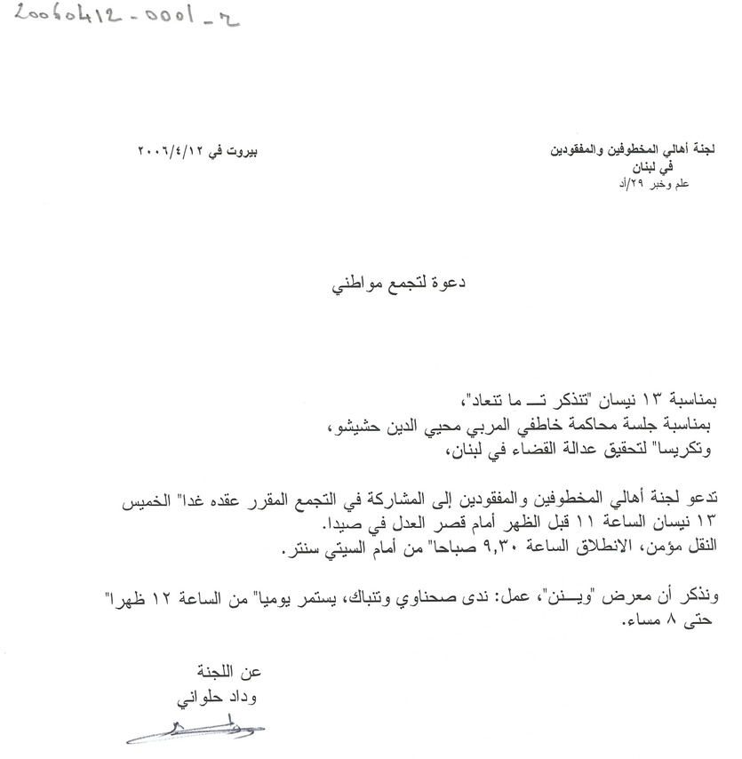 - لجنة اهالي المخطوفين والمفقودين في لا لبنان