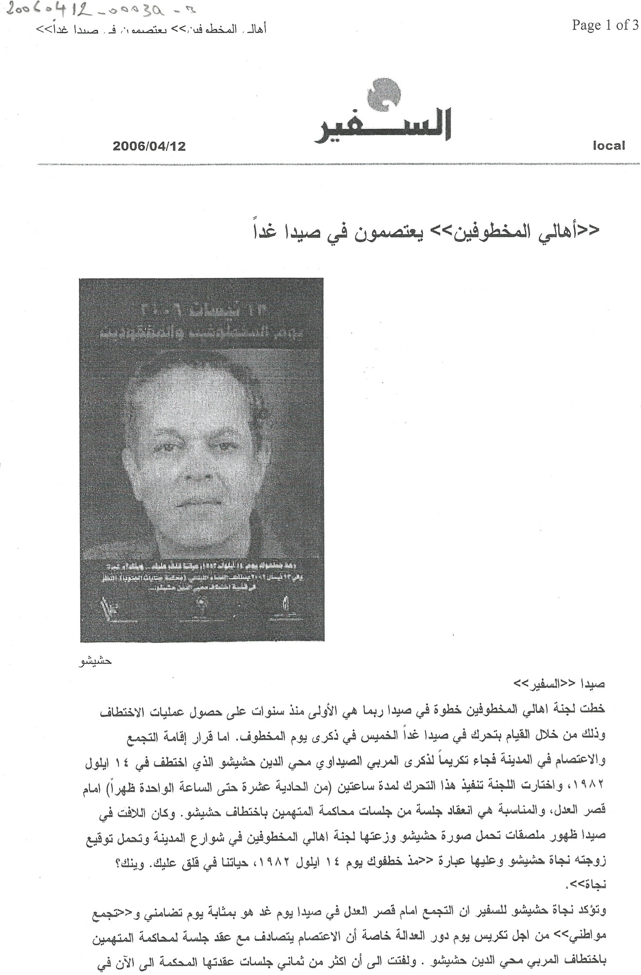 - en The families of the kidnapped will hold a sit-in tomorrow in Saida.