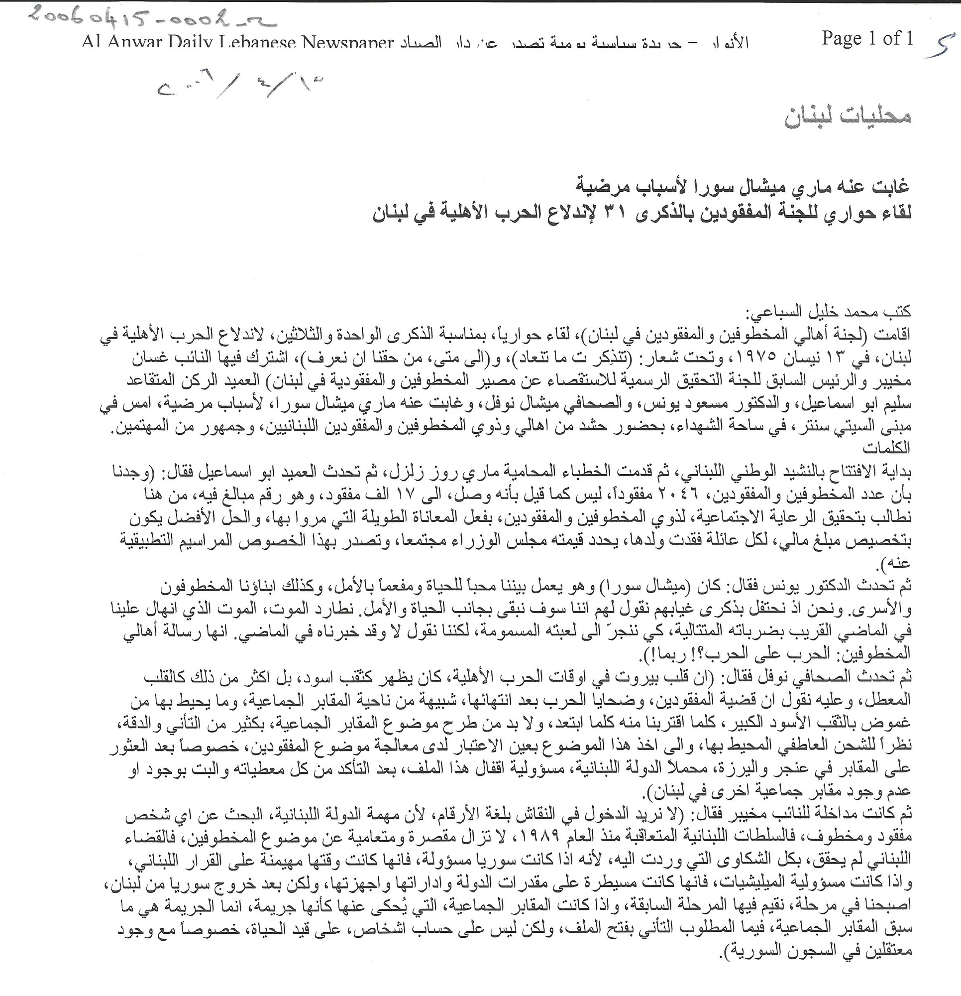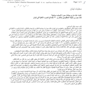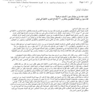 لقاء حواري للجنة المفقودين بالذكرى 31 لاندلاع الحرب الاهلية في لبنان: غاب عنه ماري ميشال سورا لاسباب مرضية