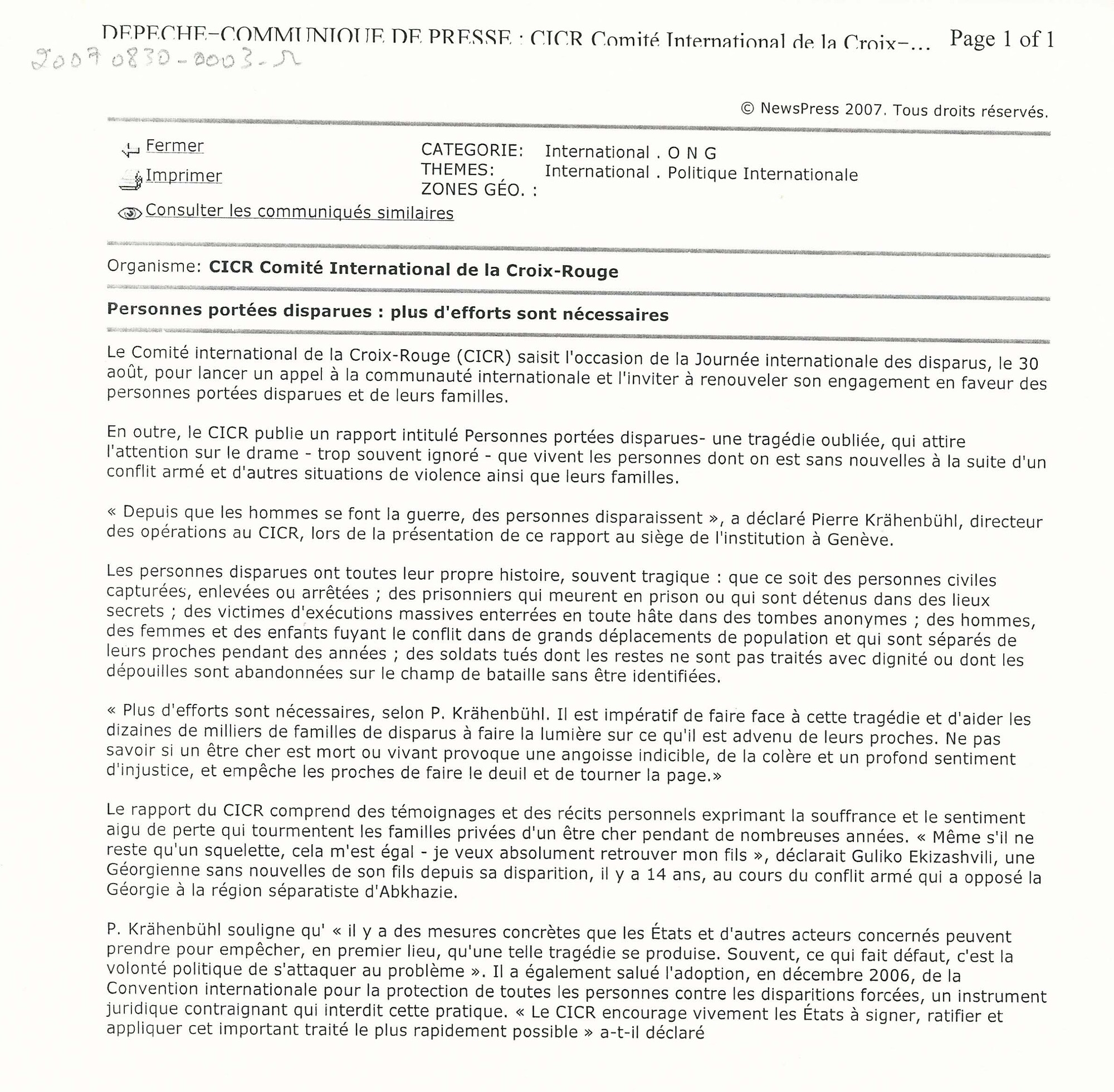 - fr Personnes portées disparues : Plus d'efforts sont nécessaires