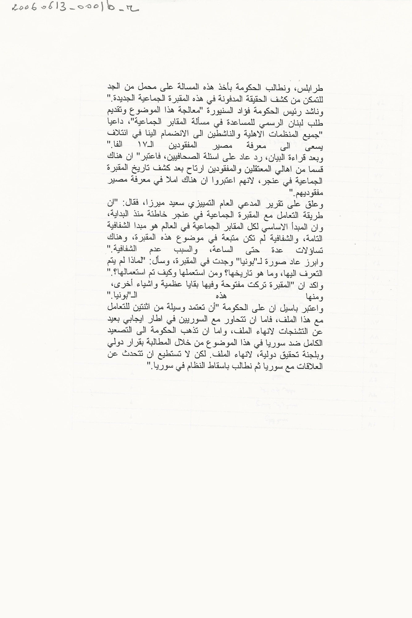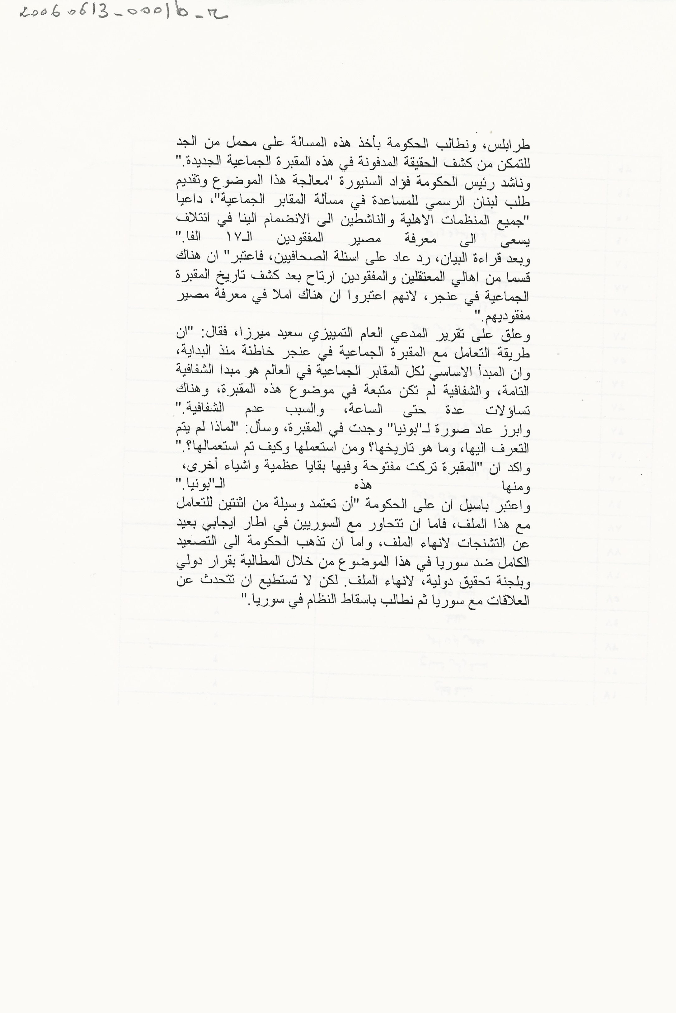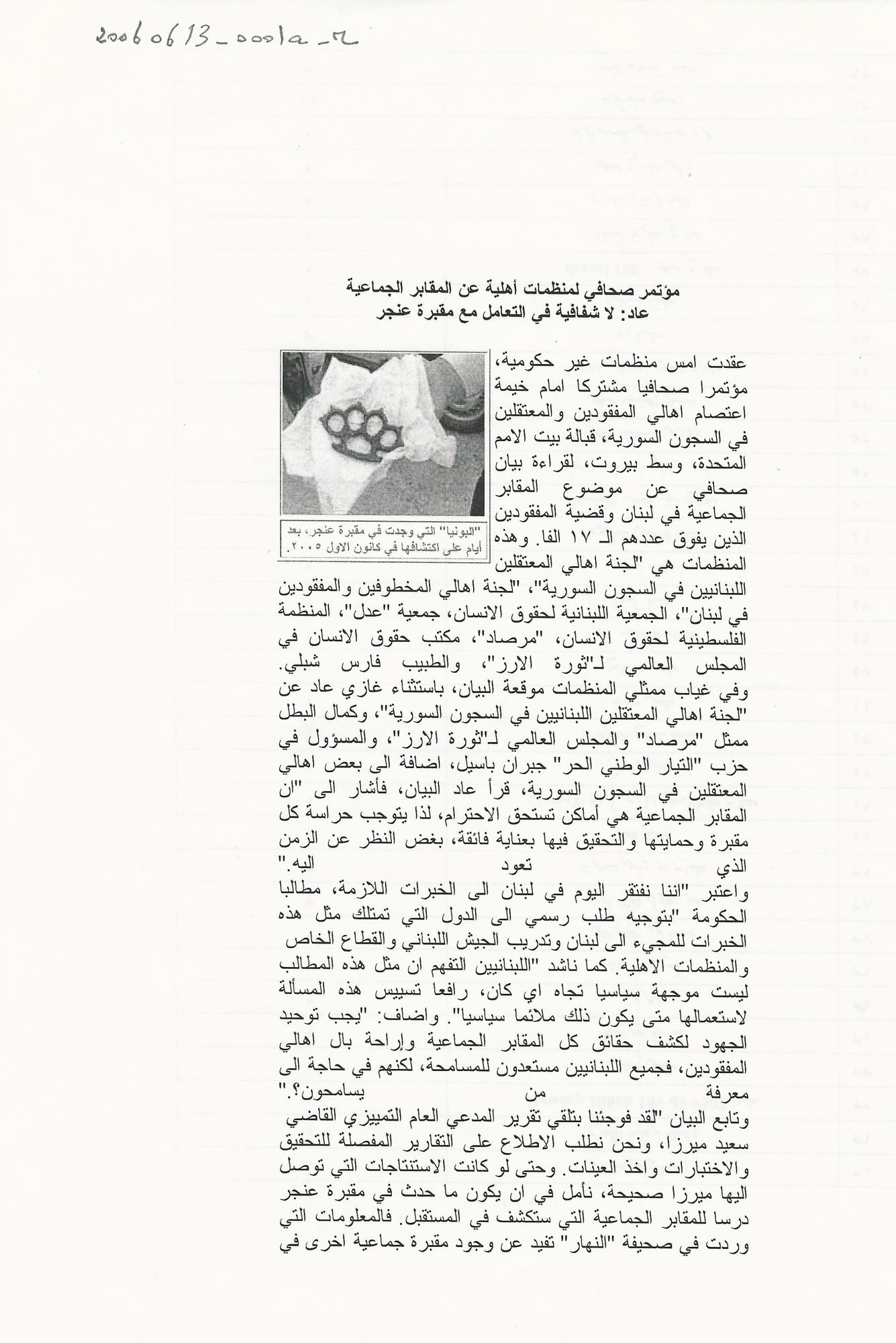 مؤتمر صحافي لمنظمات اهلية عن المقابر الجماعية، عاد: لا شفافية في التعامل مع مقبرة عنجر