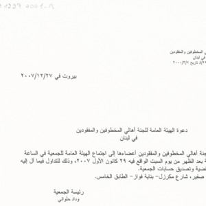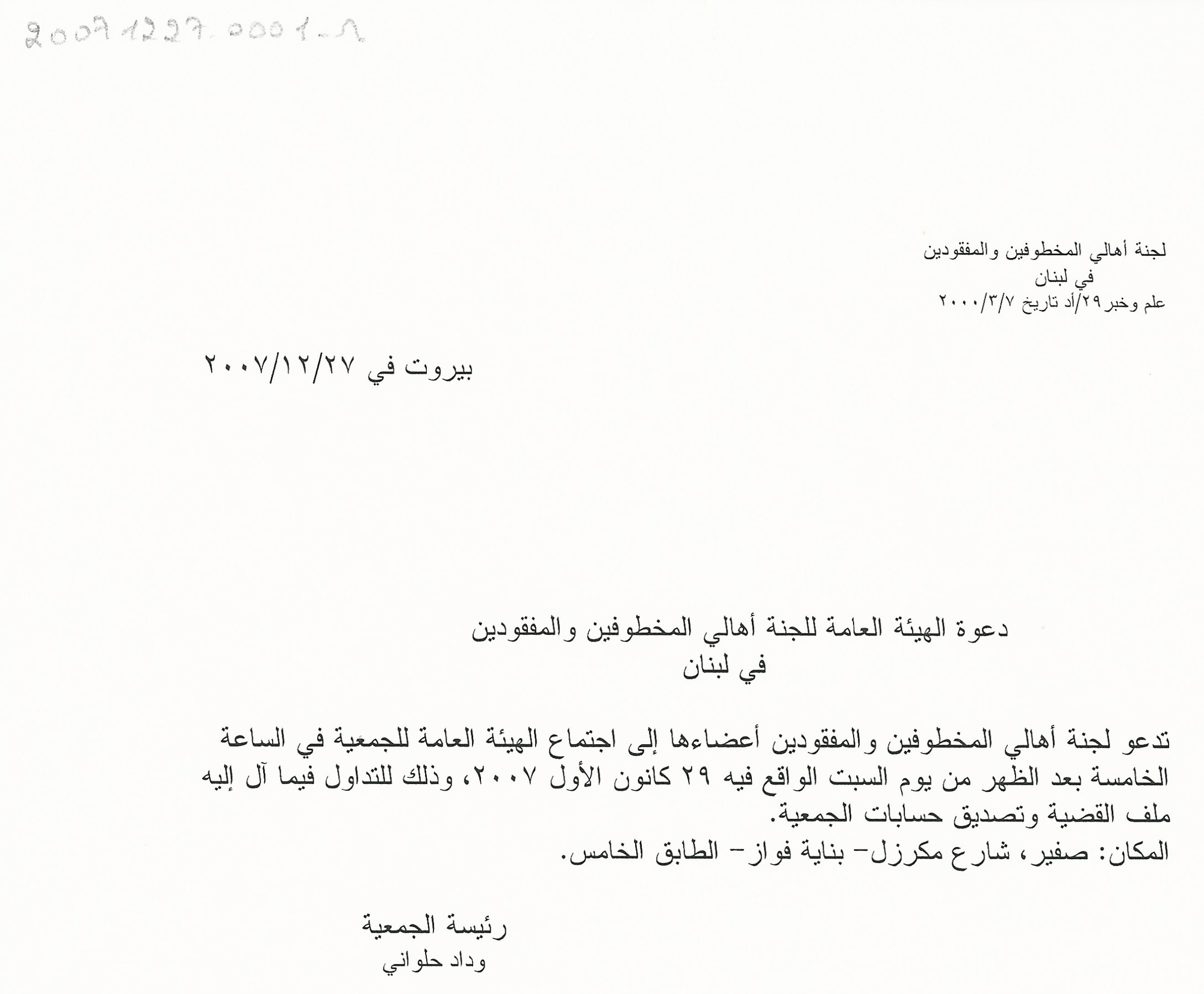 - ar دعوة الهيئة العامة للجنة اهالي المخطوفين والمفقودين في لبنان