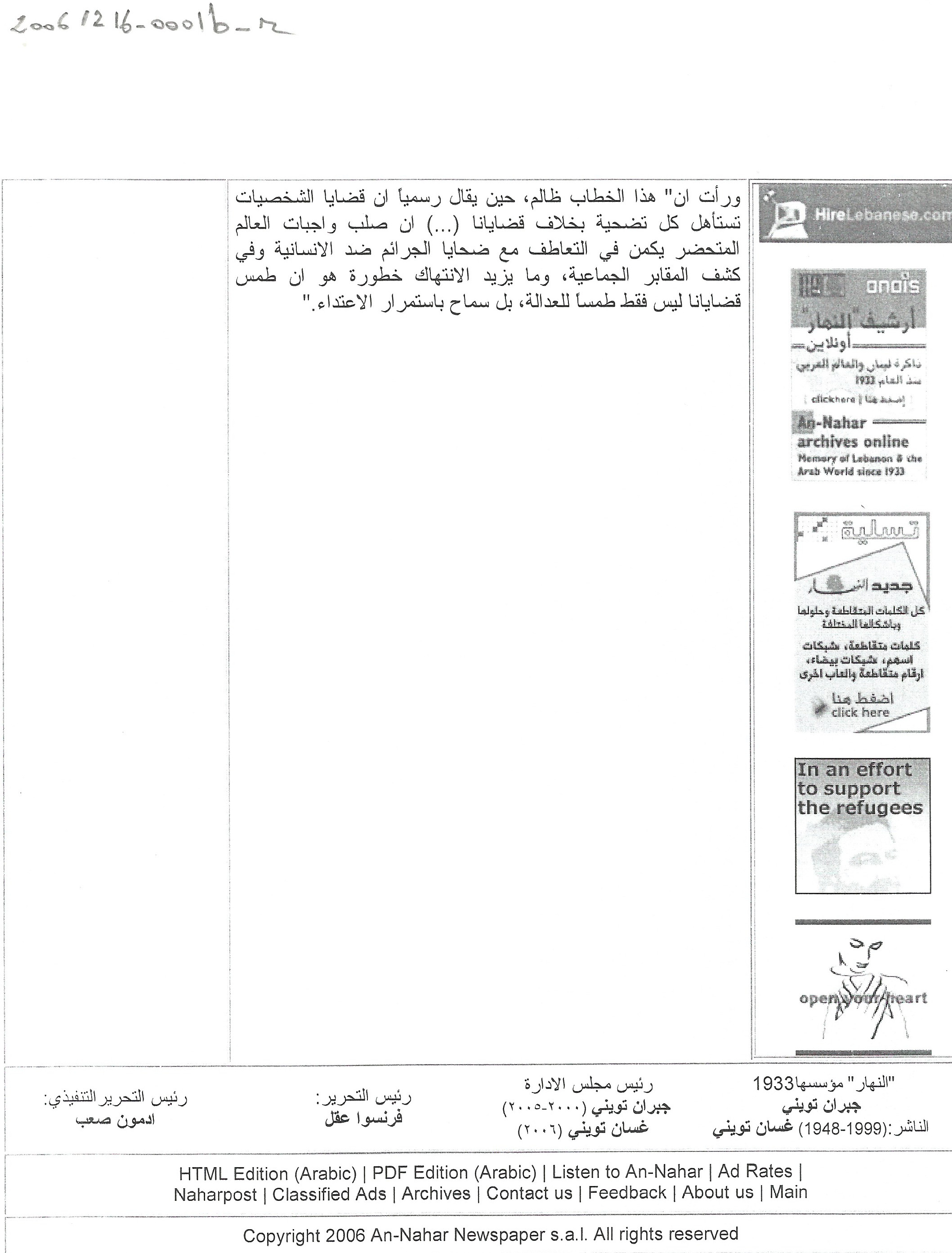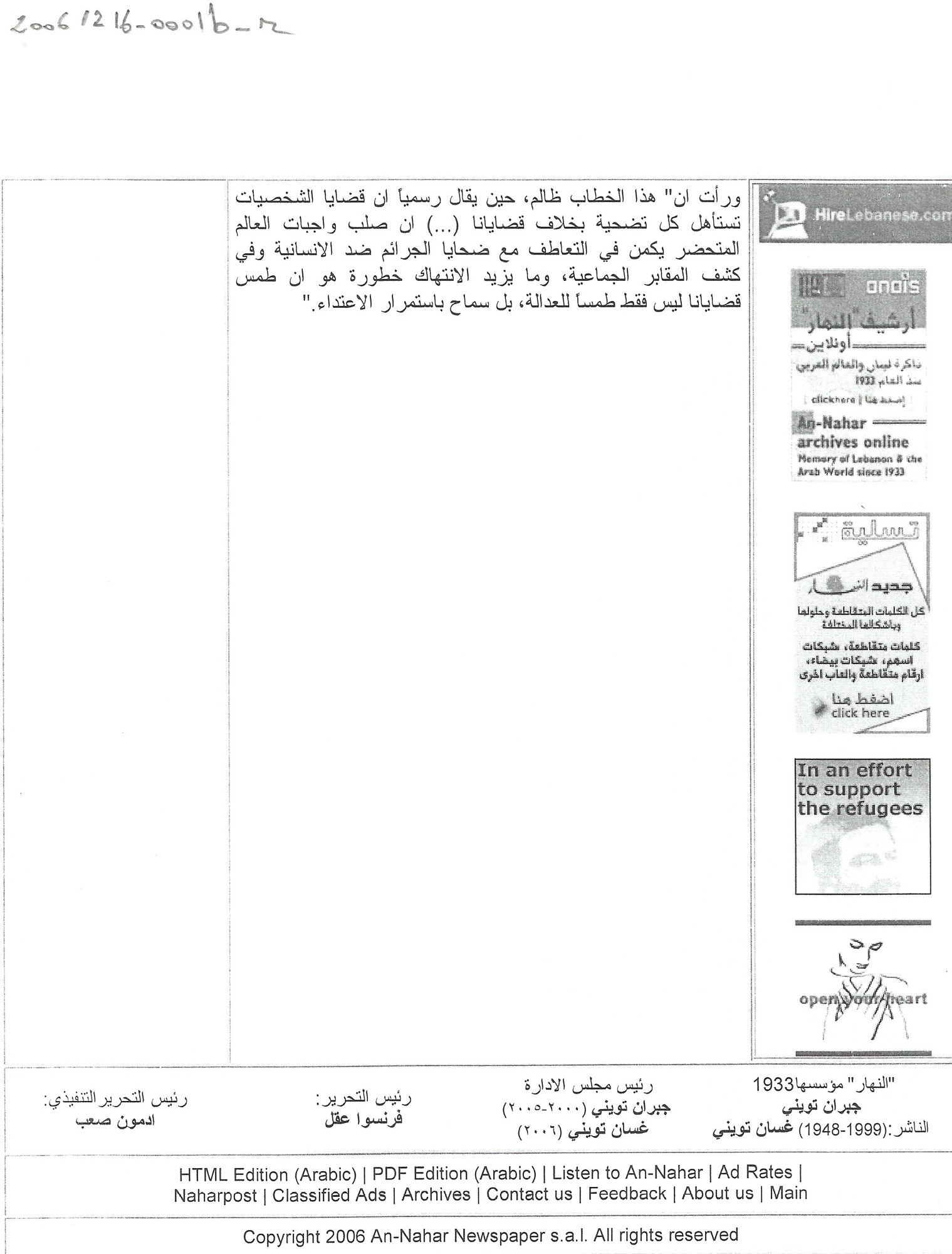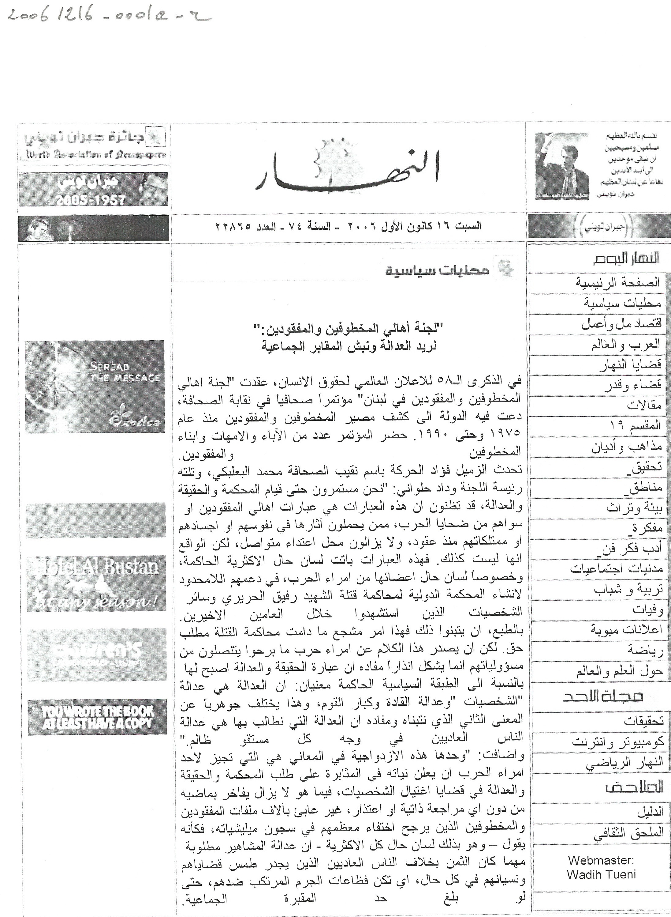 - ar لجنة اهالي المخطوفين والمفقودين: نريد العدالة ونبش المقابر الجماعية