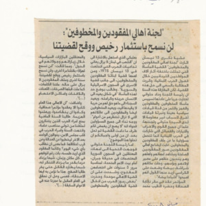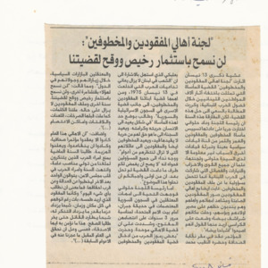 - en The Committee of the Families of the Missing and Kidnapped: We adamantly stand against any cynical exploitation to our issue.