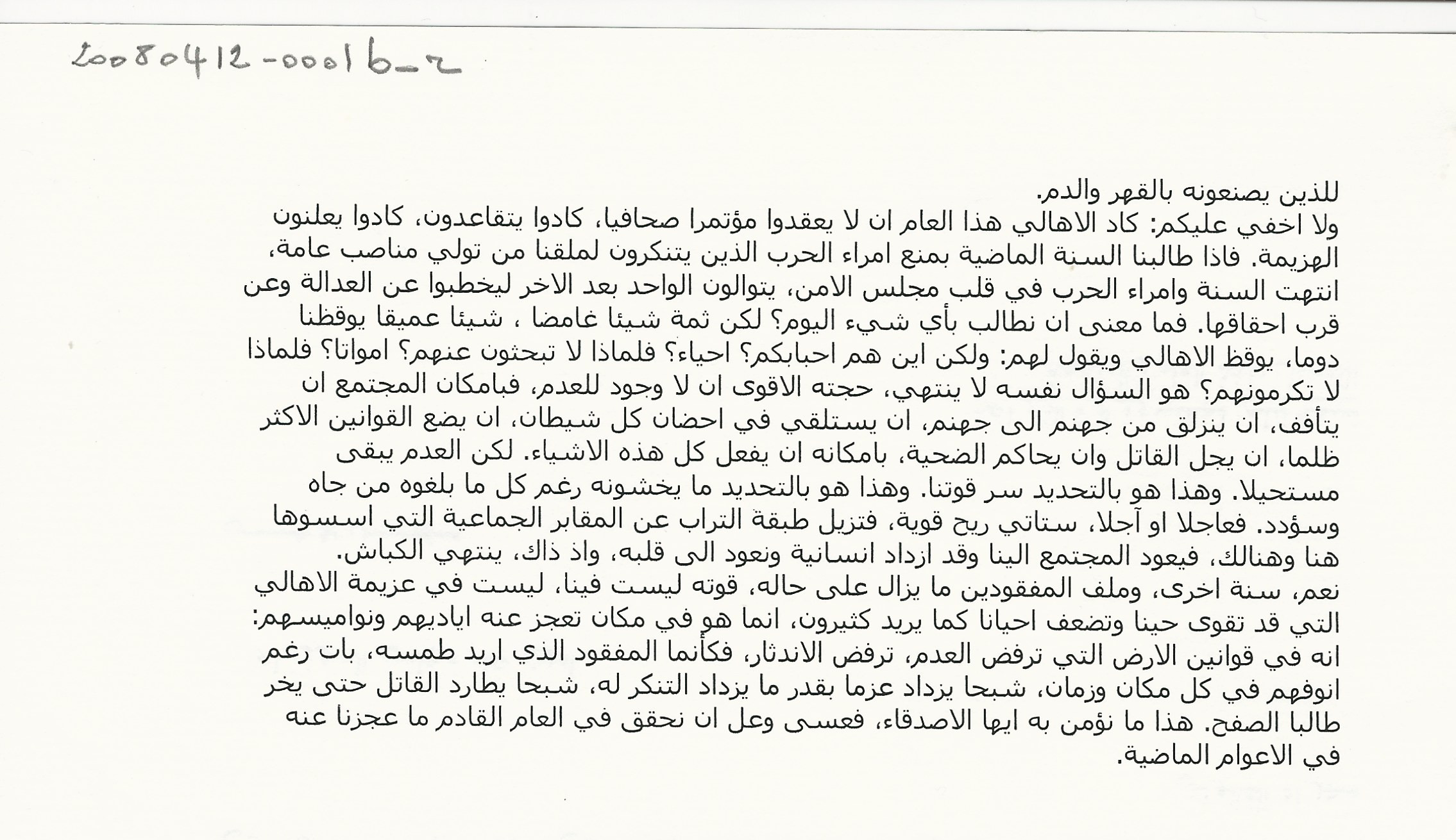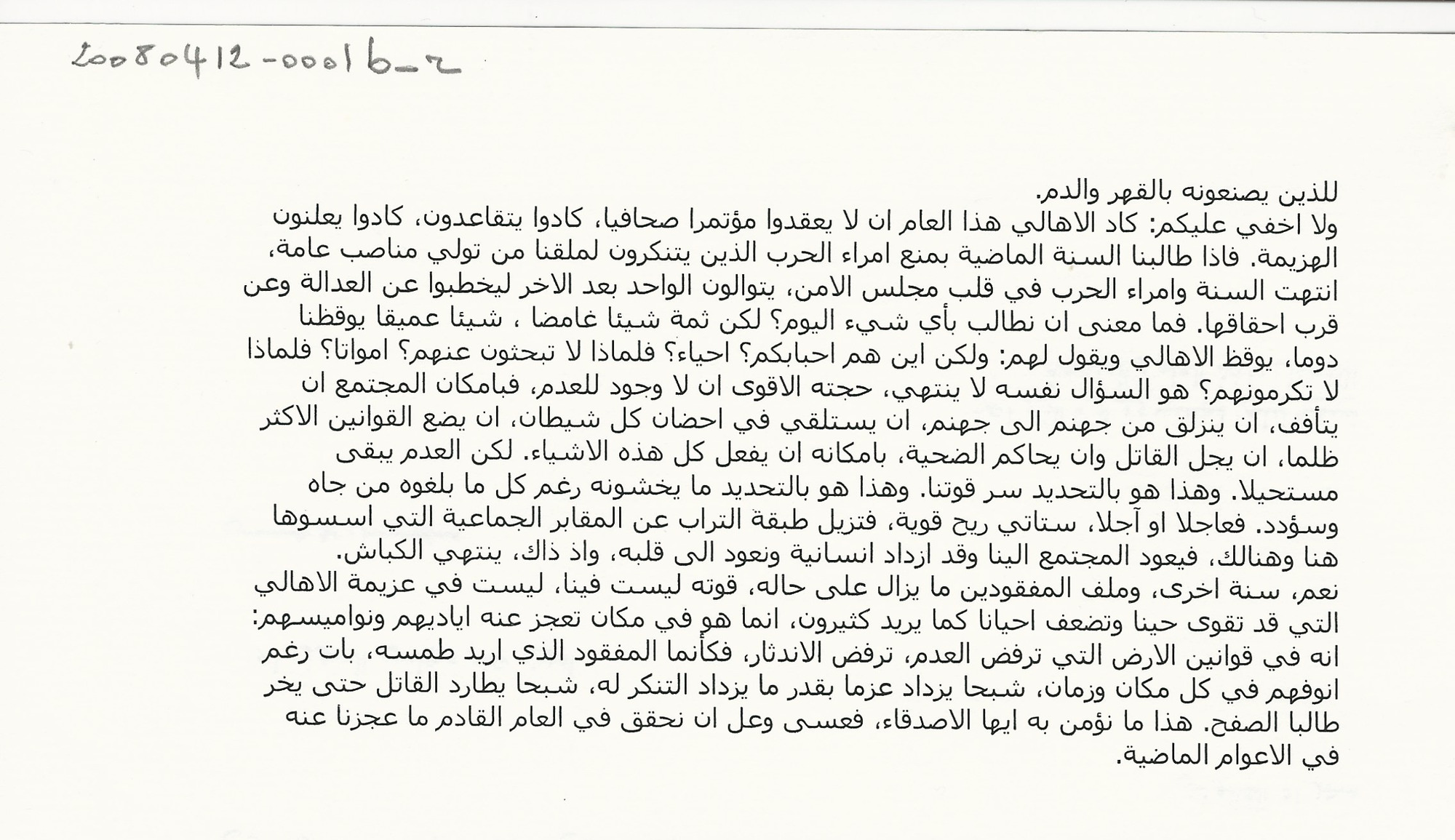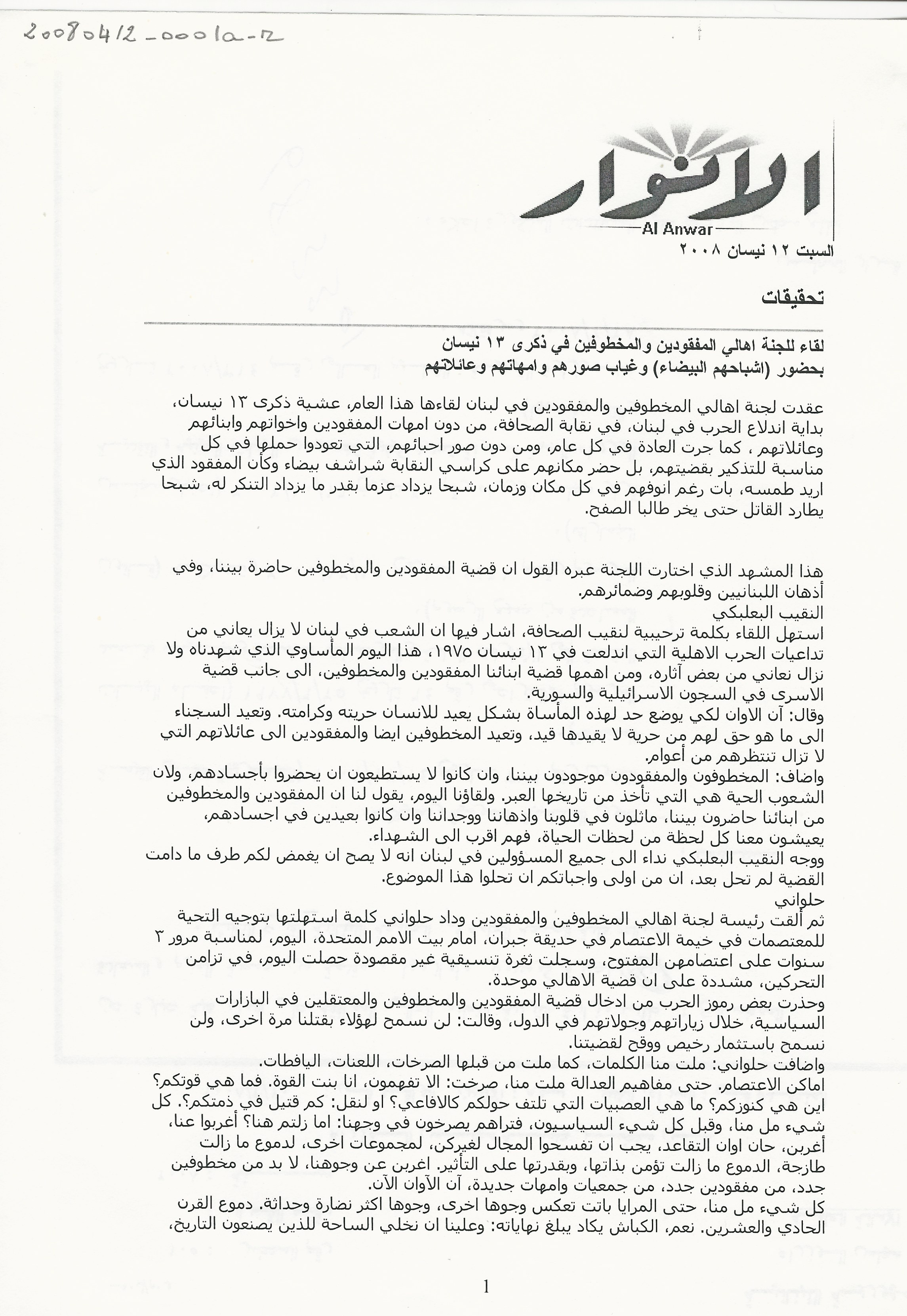 لقاء للجنة اهالي المفقودين والمخطوفين في ذكرى 13 نيسان، بحضور اشباحهم البيضاء وغياب صورهم وامهاتهم وعائلاتهم