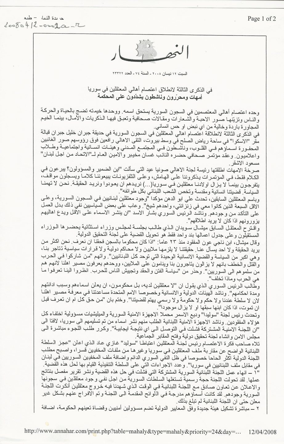 النهار، العدد 23322، السنة 74