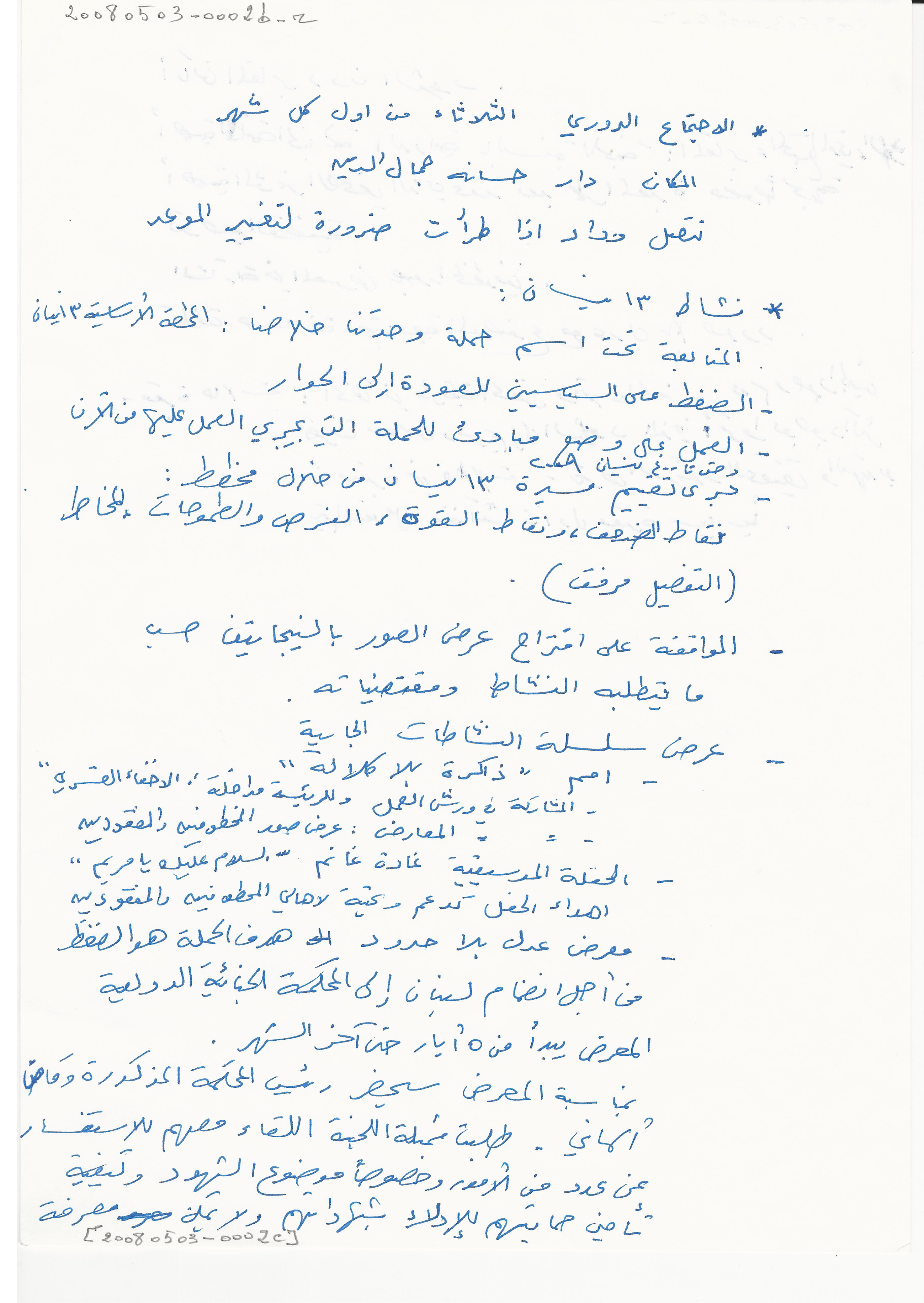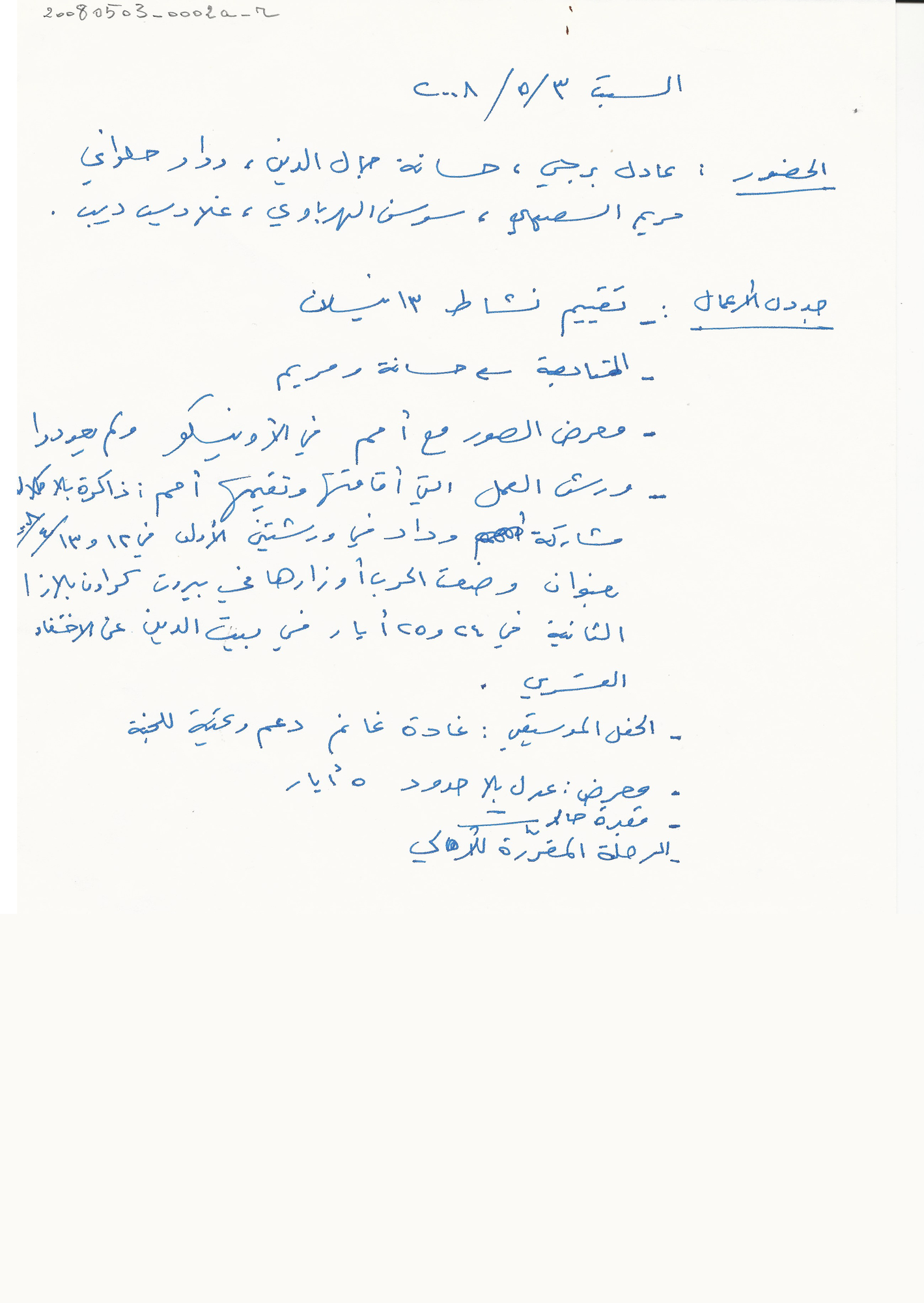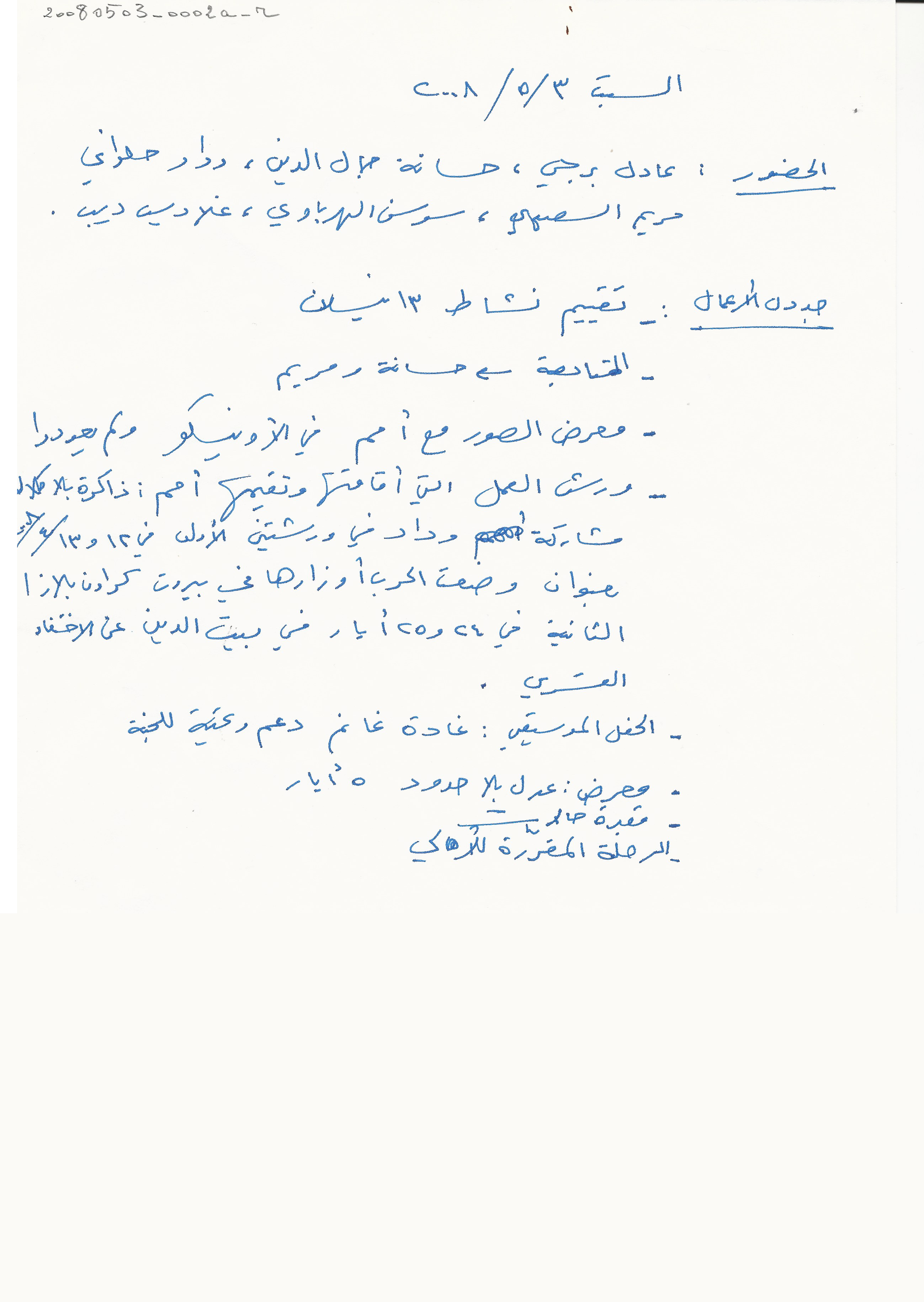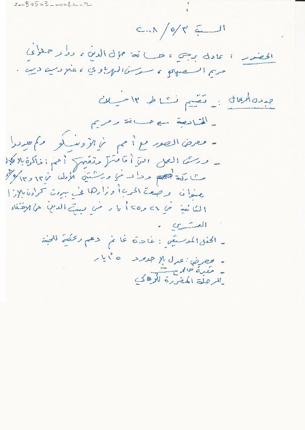 - ar محضر اجتماع الهيئة الادارية للجنة الاهالي، السبت 3، 5، 2008