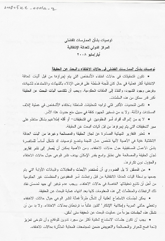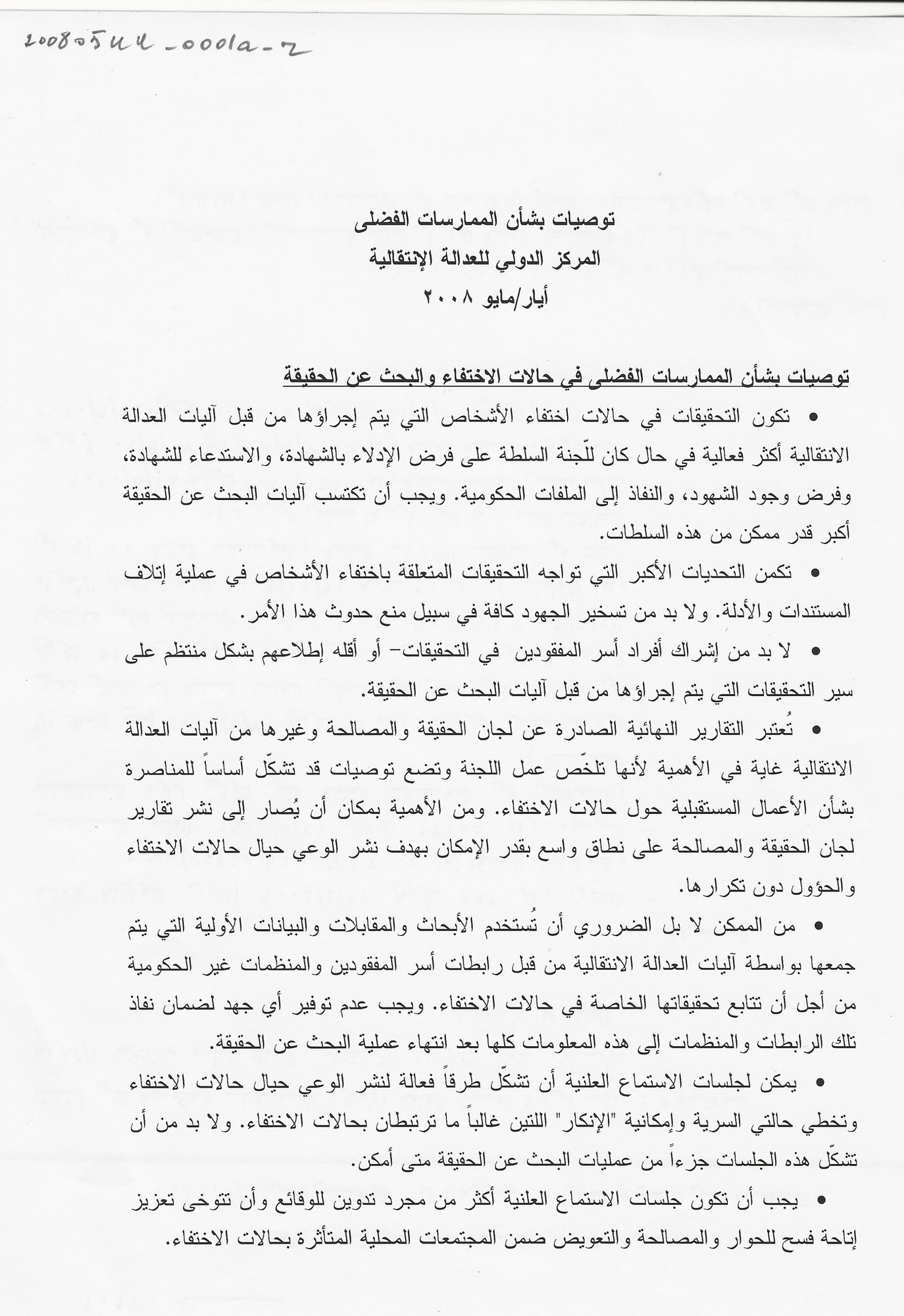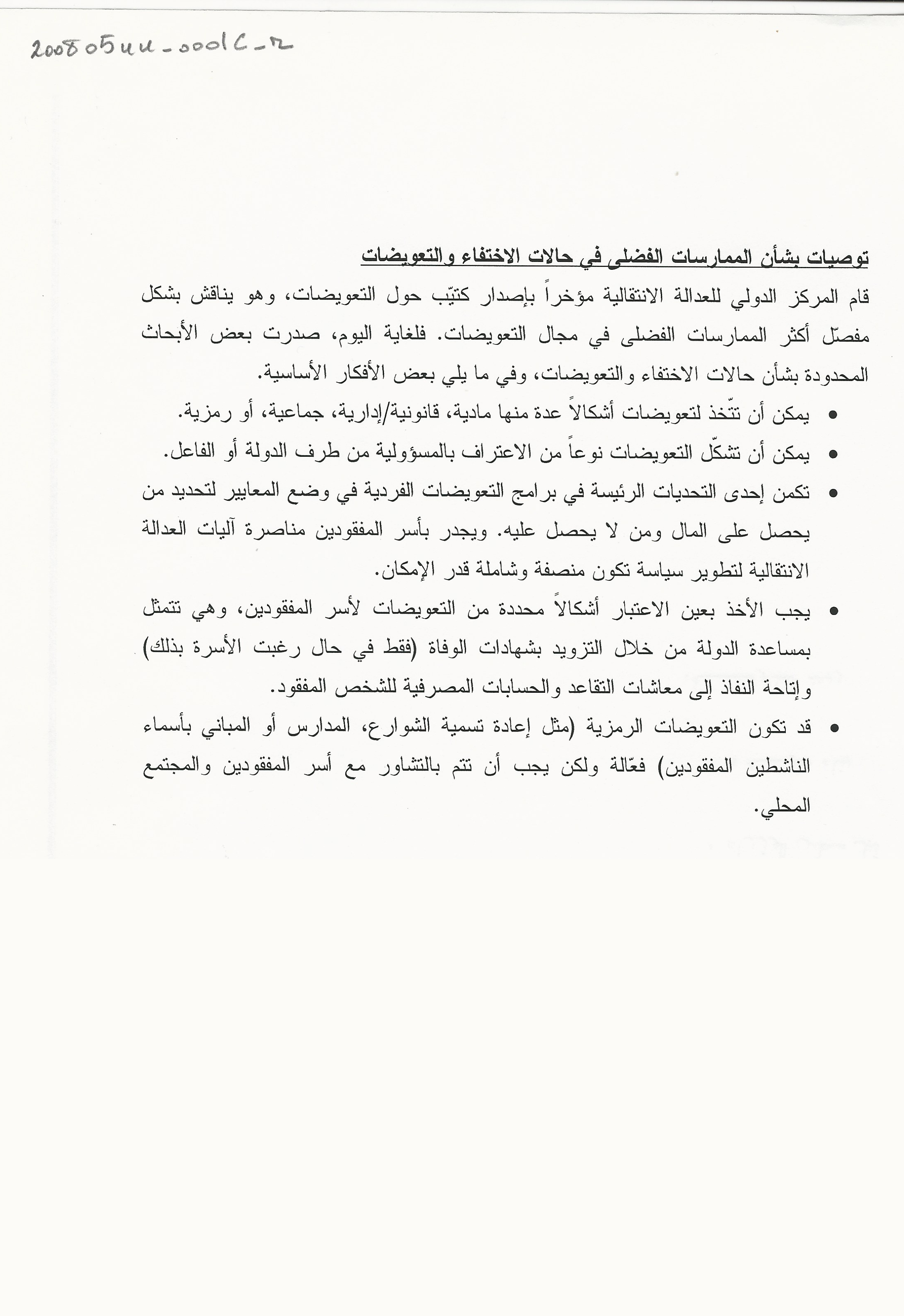 - ar توصيات بشان الممارسات الفضلى، المركز الدولي للعدالة الانتقالية