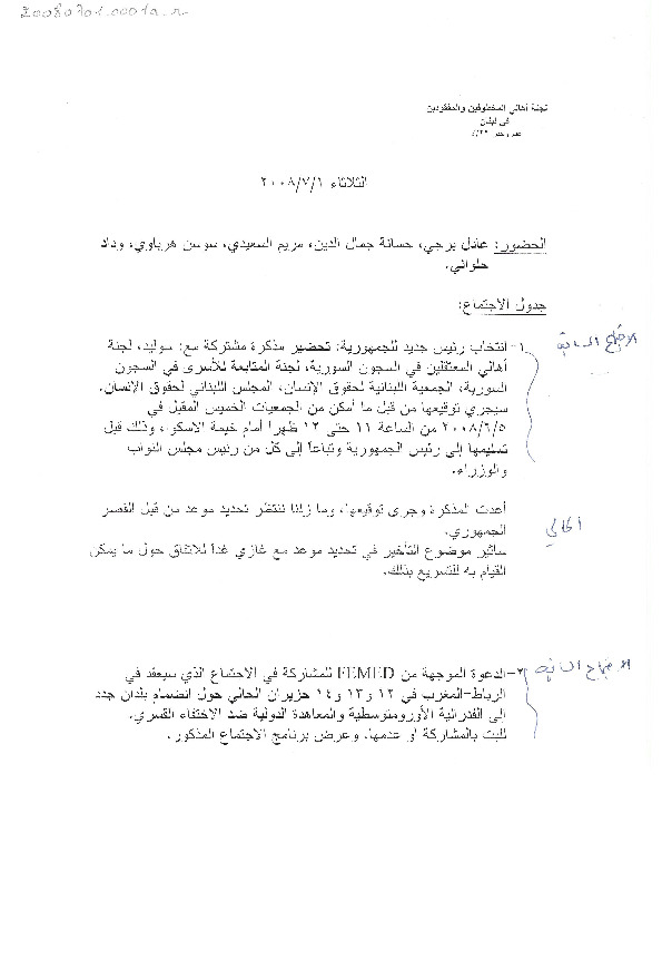 - ar محضر اجتماع الهيئة الادارية للجنة الاهالي، الثلاثاء، 1، 7، 2008