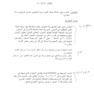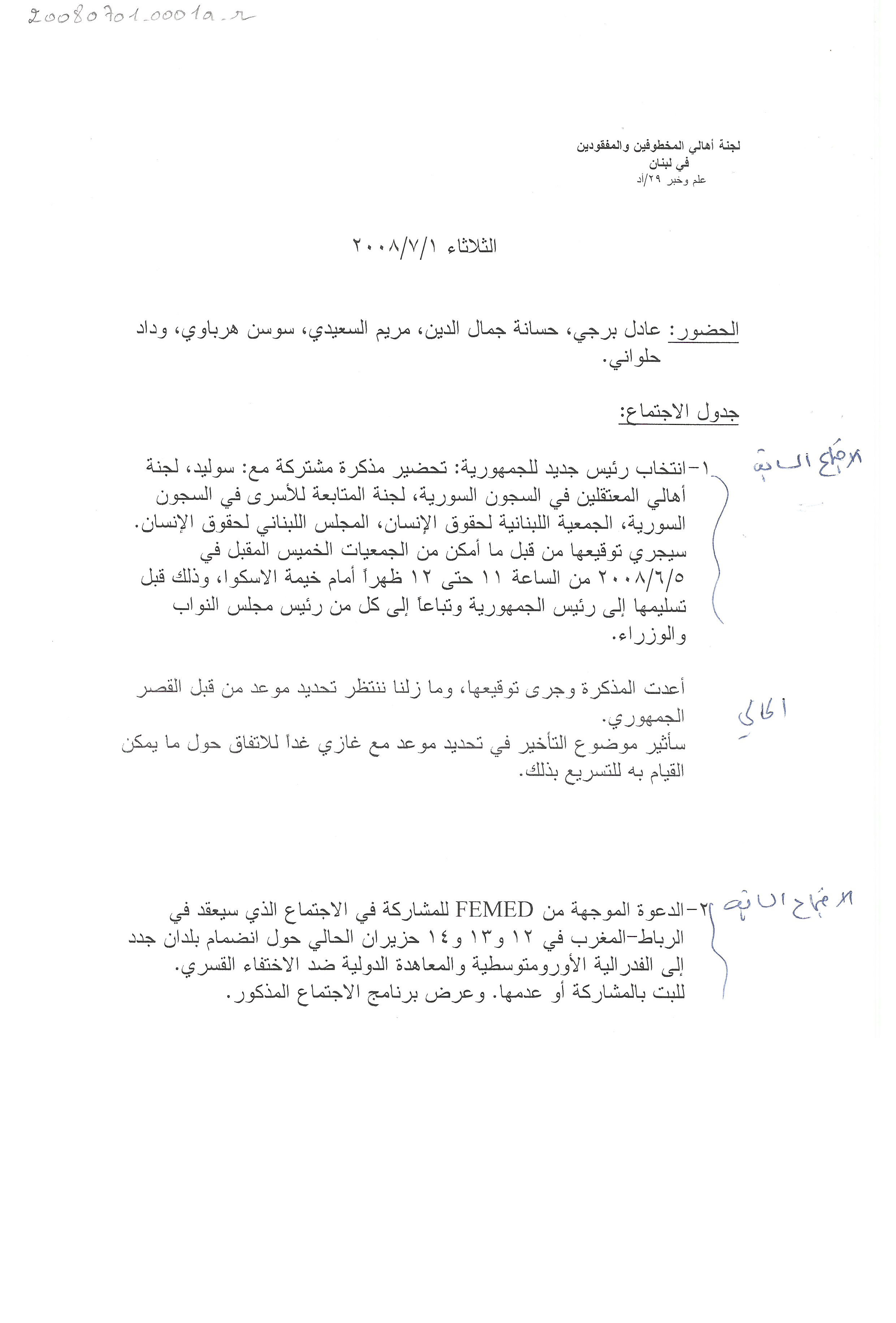 محضر اجتماع الهيئة الادارية للجنة الاهالي، الثلاثاء، 1، 7، 2008