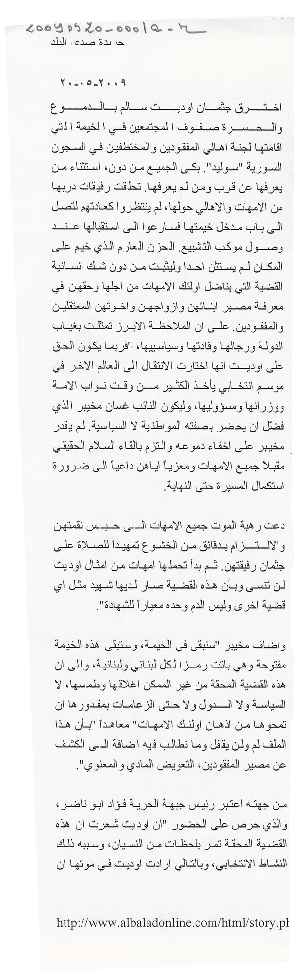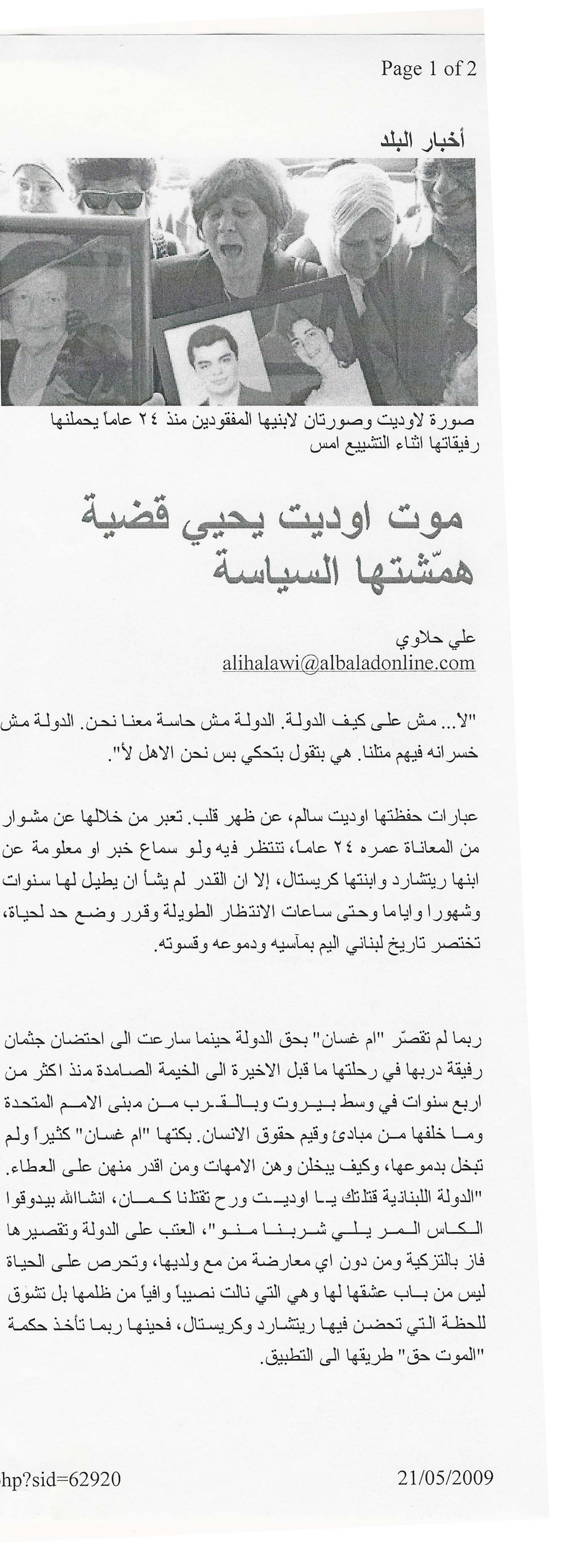 - ar موت اوديت يحيي قضية همشتها السياسة