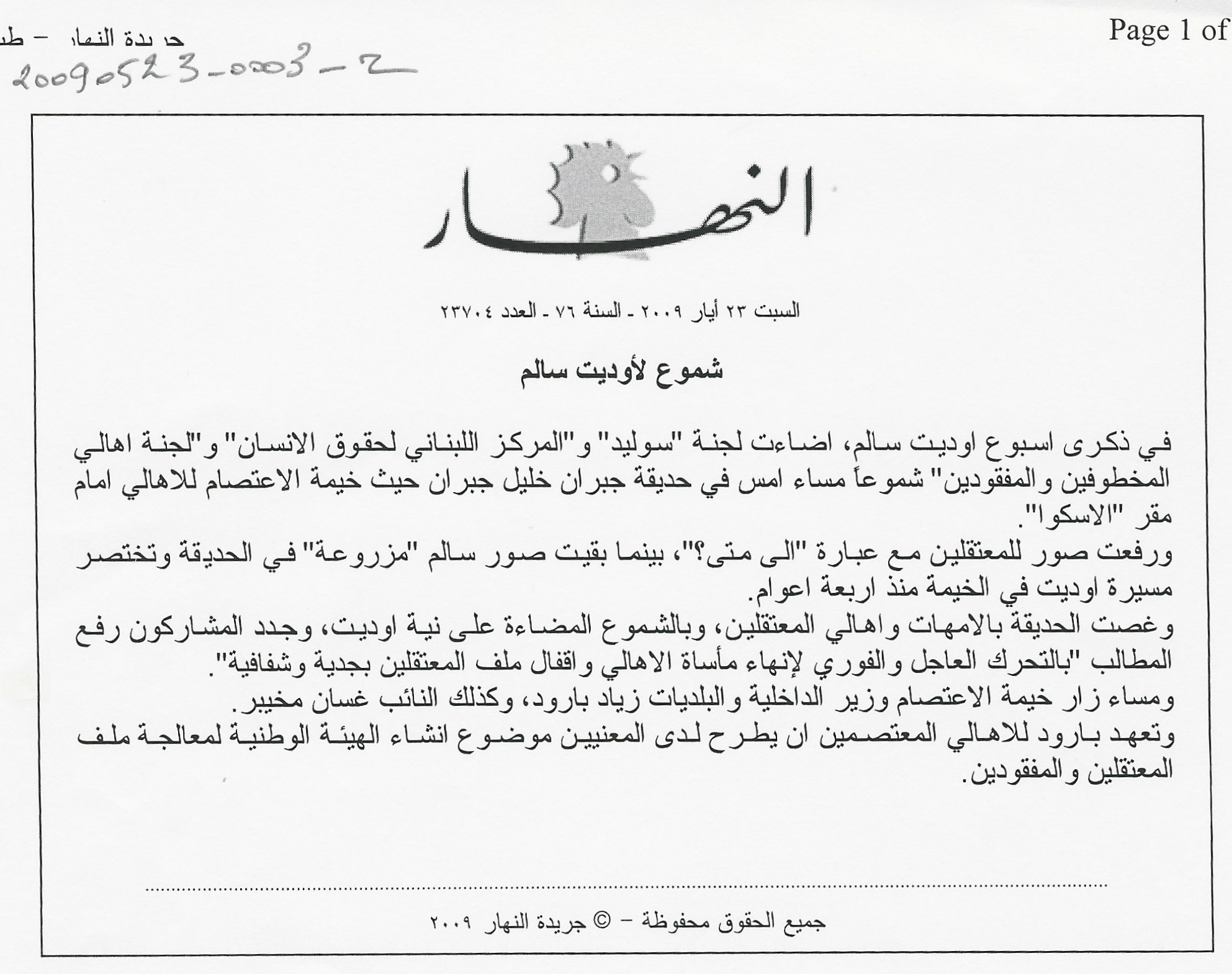 - النهار، العدد 23704، السنة 76