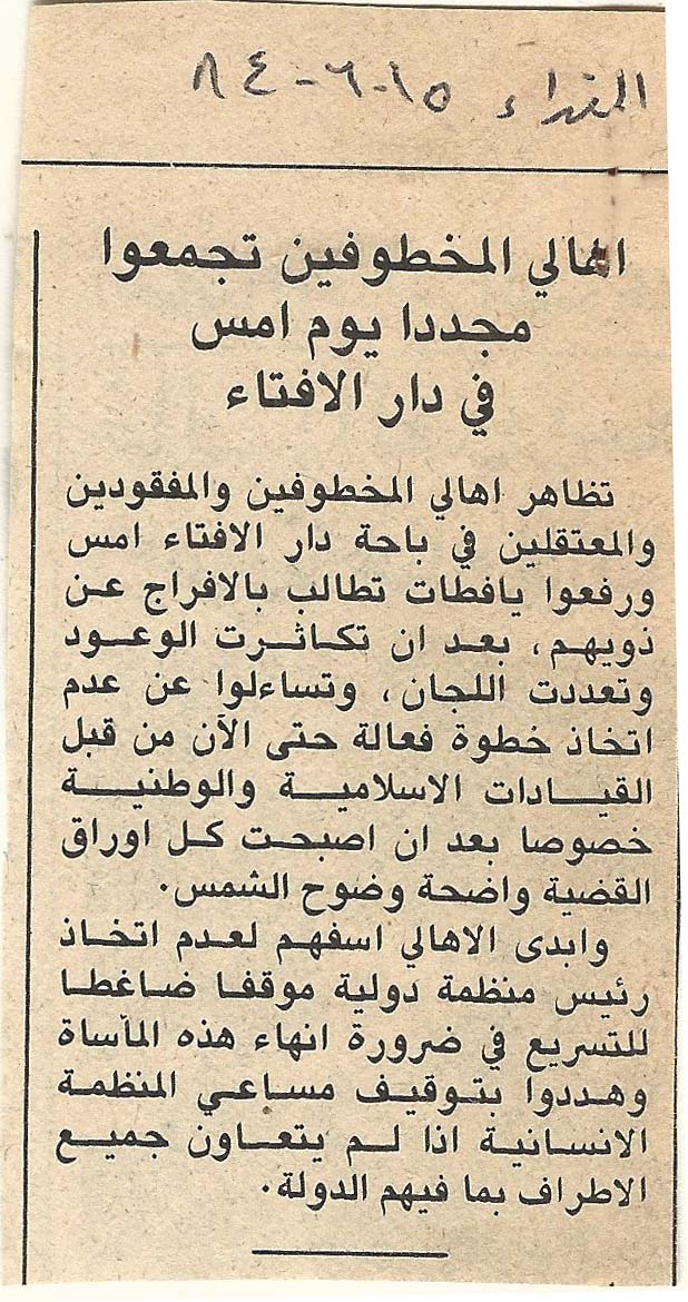 اهالي المخطوفين تجمعوا مجددا يوم امس في دار الافتاء