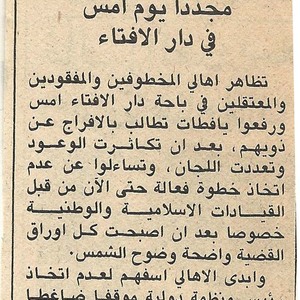 - en The families of those kidnapped gathered again at Dar al-Fatwa yesterday.