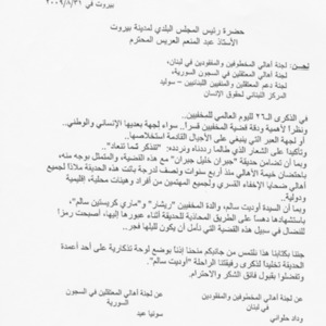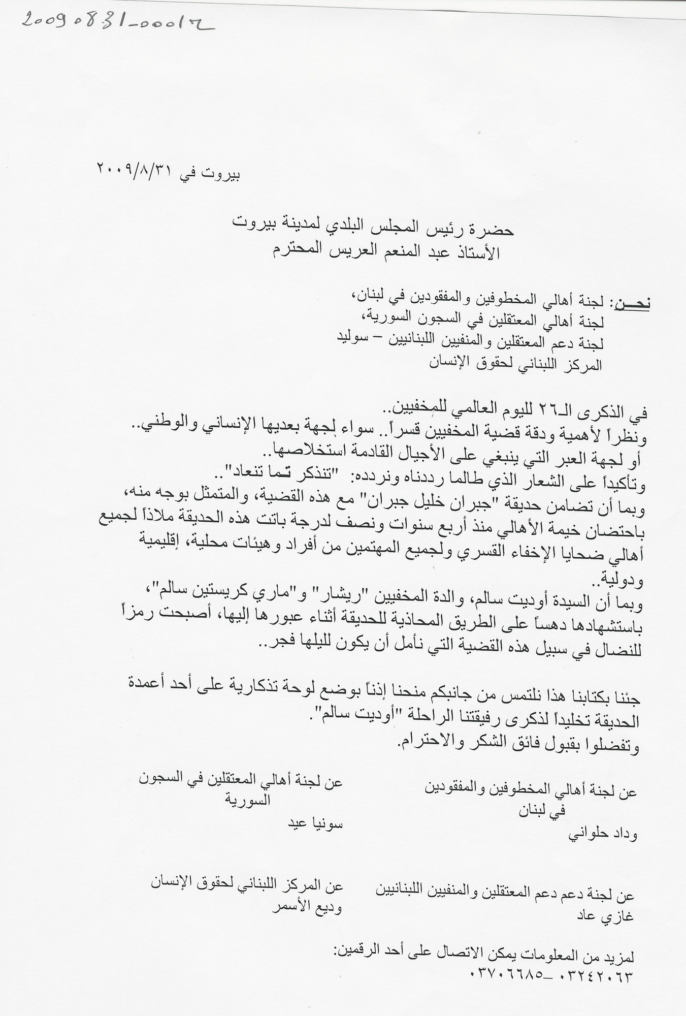 طالب من مجلس بلدية بيروت السماح بوضع لوحة تذكارية تخليداً لذكرى أوديت سالم