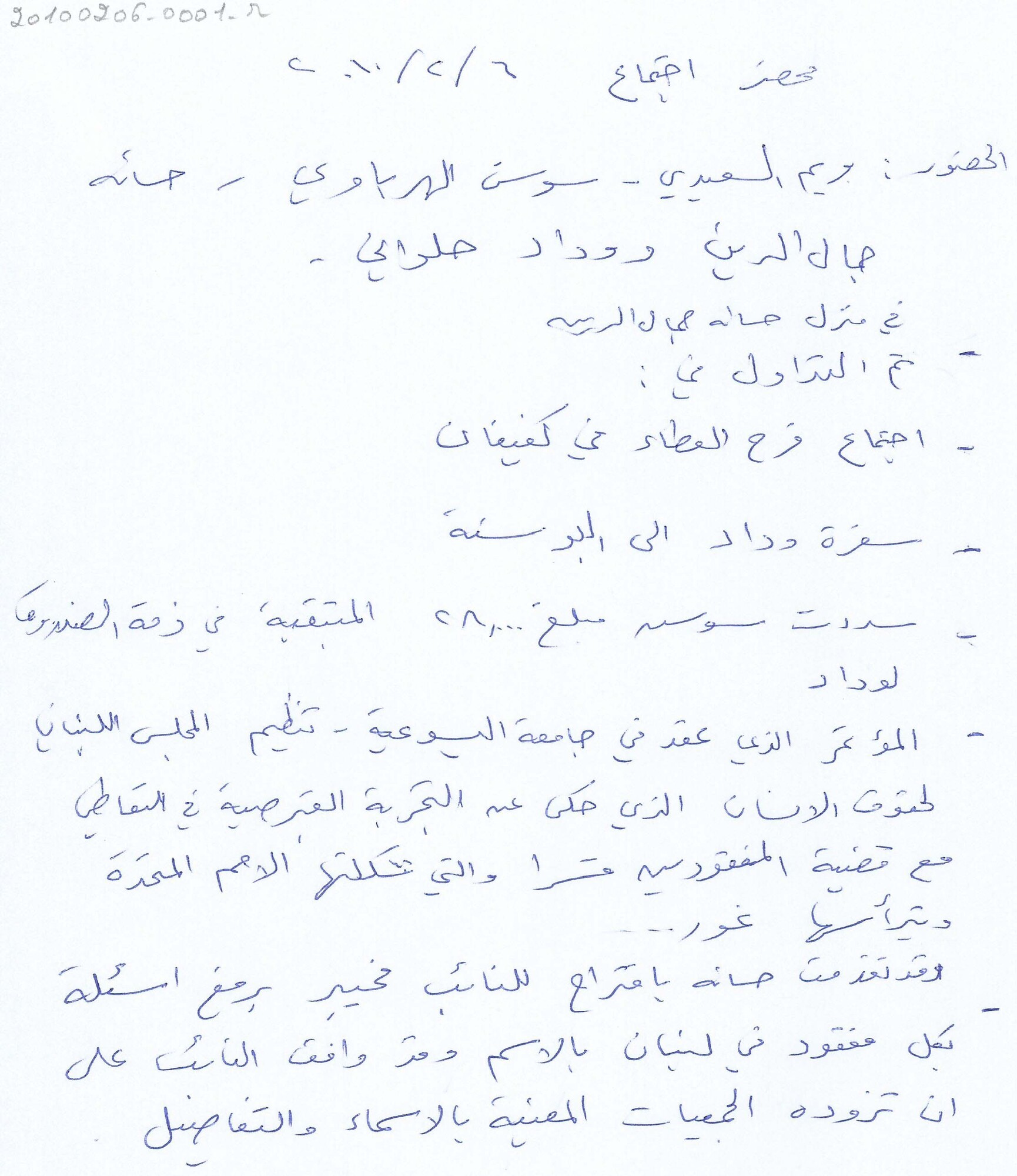 - ar محضر اجتماع الهيئة الادارية للجنة الاهالي :السبت، 6، 2، 2010